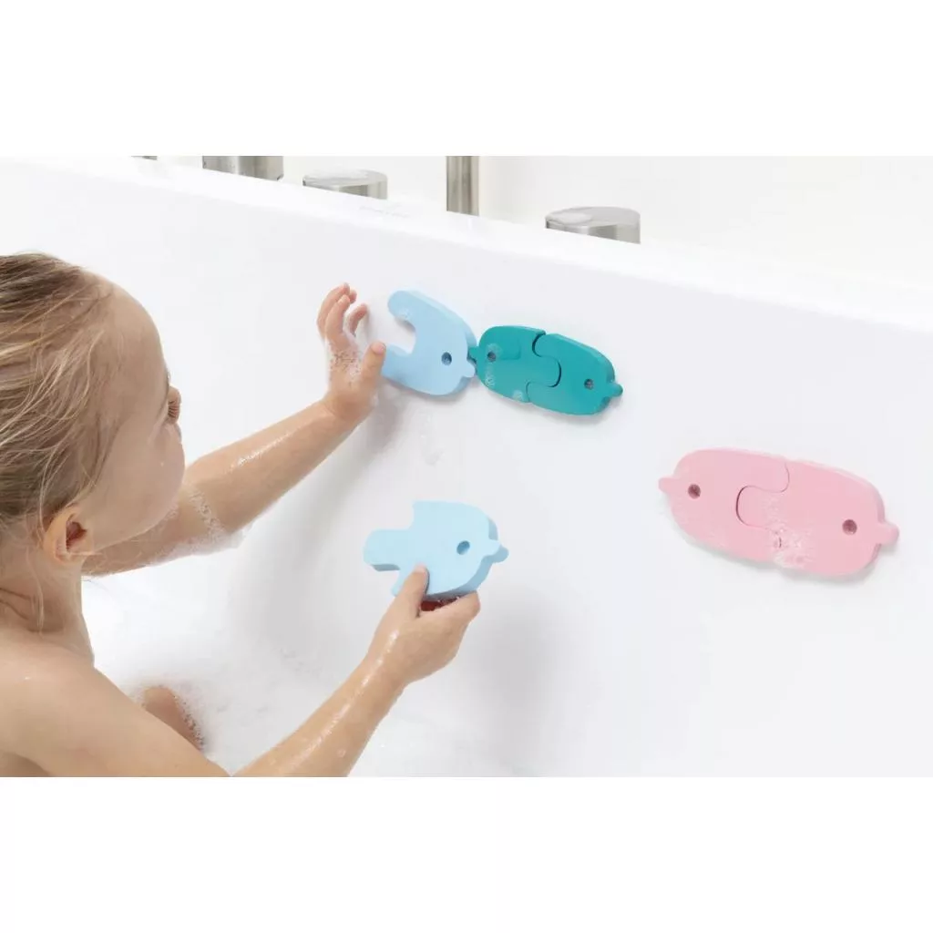 Интересные фигурки в виде водоплавающих животных держаться на воде, держатся на бортиках ванной, стенках в душе и на кафеле. Вы можете сами создать новое животное! Комбинируйте разнообразные наборы, цвета и формы, развивайте мелкую моторику. Малыши с удовольствием будут создавать животных, а родители помогут им в этом! Фигурки не впитывают в себя воду тем самым предотвращается размножение грибков и плесени. Используемая мягкая пена не содержит Бисфенол А, фталатов и латекса и пригодна для переработки.