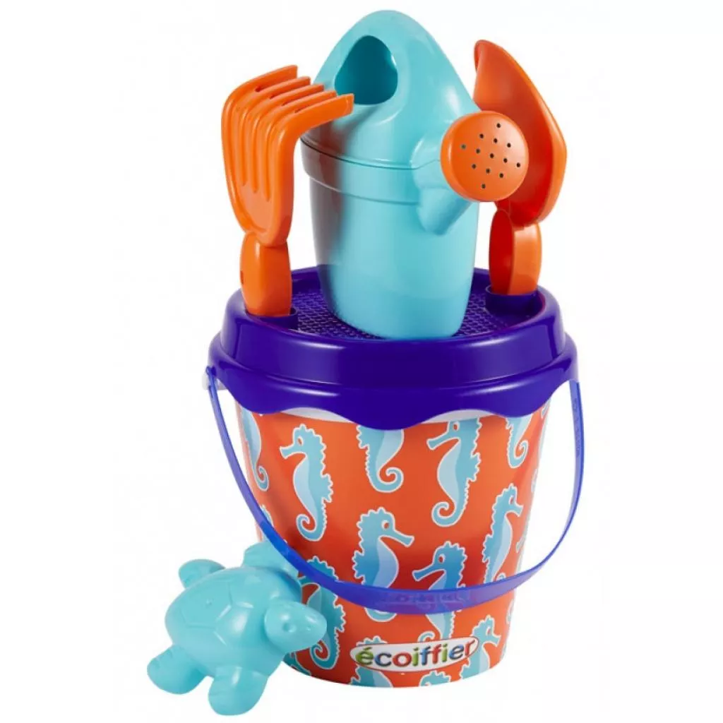 Набор для игры с песком идеально подойдет для теплых солнечных дней: ведро (17 см) с ручкой и модным мотивом фруктового коктейля, имеет устойчивый к царапинам рисунок, сито, лейка, лопата и грабли помогут получить максимум удовольствия и веселья.