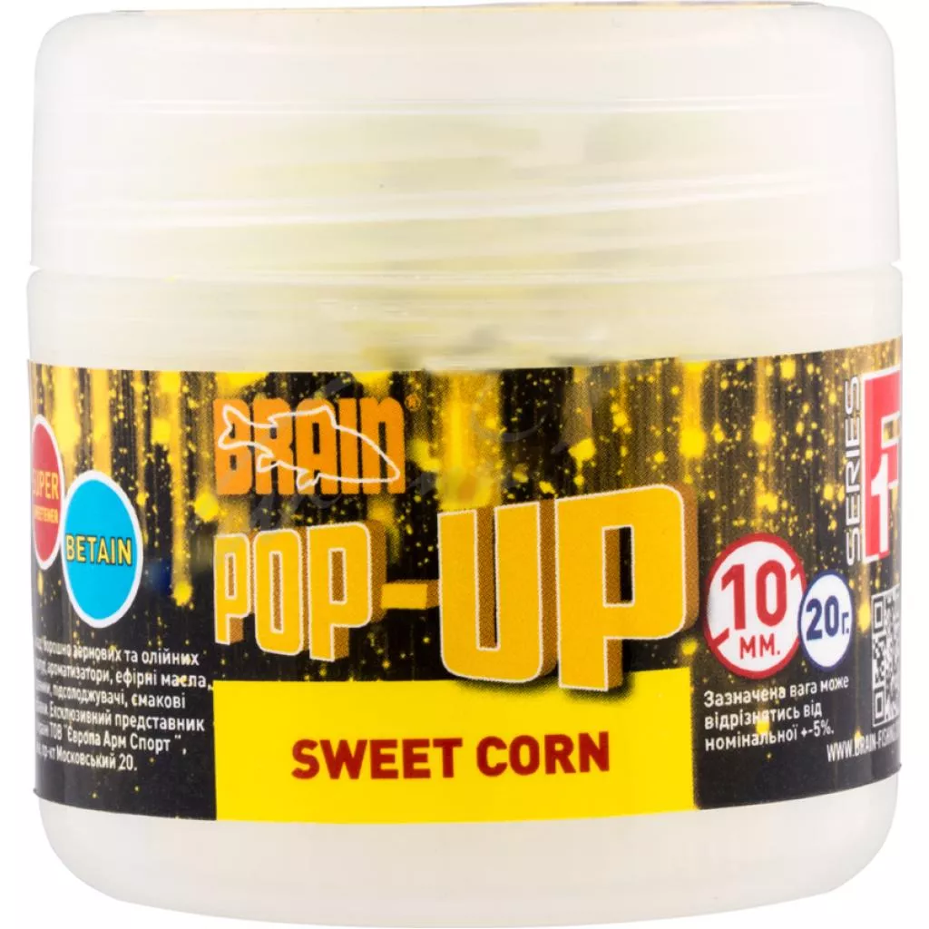 Бойлы Brain Pop-Up F1 Sweet Corn обладают традиционным вкусом, работающим на диких водоемах, где рыба не приучена к исскуственным насадкам. Их яркая расцветка дает возможность рыбе быстрее обнаружить приманку в мутной воде и на заросшем дне водоёма.