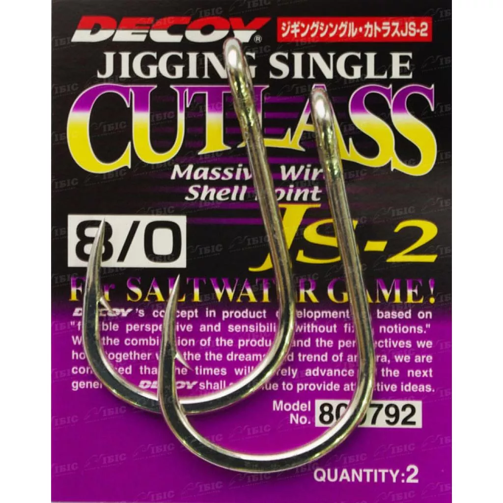 Decoy JS-2 - Серия (модельный ряд) очень мощных крючков, разработанных для морской джиговой ловли крупной и сильной рыбы. Имеют специальное покрытие, которое предотвращает окисление металла. В наших условиях данные крючки применяются при ловле сома на живые насадки - пучок червей, ракушки, куски рыбы и т.п.