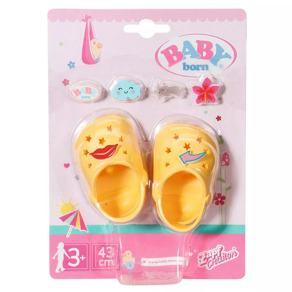 Праздничные желтые сандалии с комплектом значков подарят еще больше вариантов для создания образа Вашей BABY born! Значки на сандалиях можно комбинировать и сделать обувь подходящей для еще большего числа нарядов!