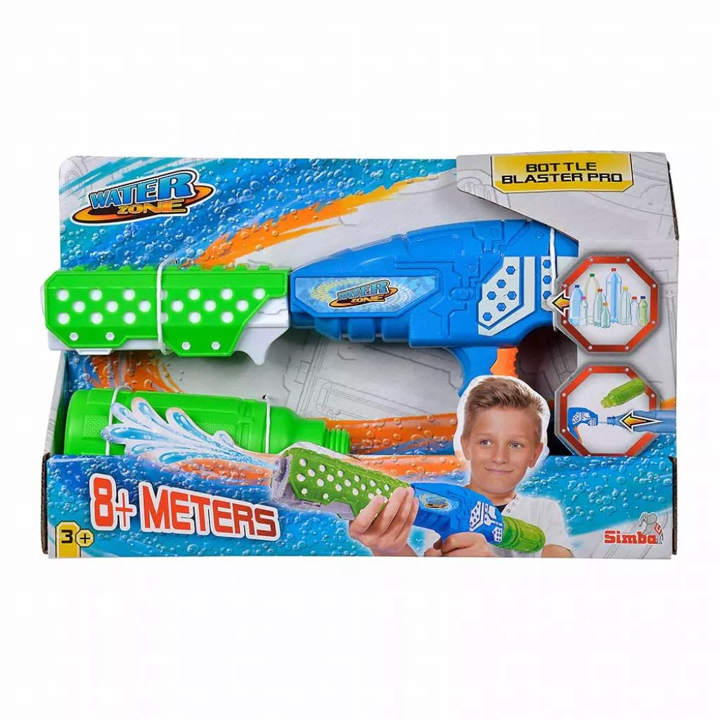 Simba представляет водный бластер со съемным контейнером, который не оставит равнодушным ни одного малыша. Можно играть большой компанией, либо самостоятельно целиться по мишени. Контейнер бластера вмещает 250 мл воды и надежно присоединяется. Лишь наполни контейнер водой, прикрути и вперед играть с друзьями. А если вдруг тебе надоест постоянно наполнять контейнер, ты легко можешь заменить его на бутылку с водой большего объема. Бластер изготовлен из высококачественного пластика и имеет современный дизайн. Он легкий и удобный для детских рук. Дальность выстрела до 8 метров. Активная и веселая игра способствует физическому развитию ребенка.