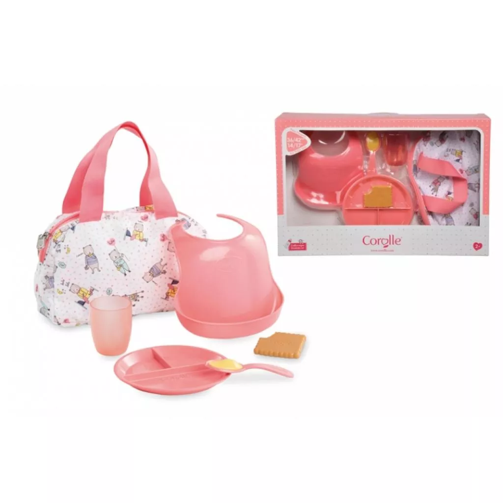 Представляем вам игровой набор Детский завтрак от Corolle, который даст возможность ребенку заботиться о своем любимом пупсе и накормить его. Набор состоит из 6 предметов: ложка с кашей, печенье, тарелка, стаканчик, нагрудник для кормления и все это можно сложить в сумочку. Она имеет две ручки и закрывается на молнию, ее удобно взять с собой на прогулку. Набор изготовлен из высококачественных материалов и имеет приятные цвета. Играя набором ребенок развивает мелкую моторику и учится быть заботливым. Набор рекомендован для игры с куклой высотой 36-42 см.