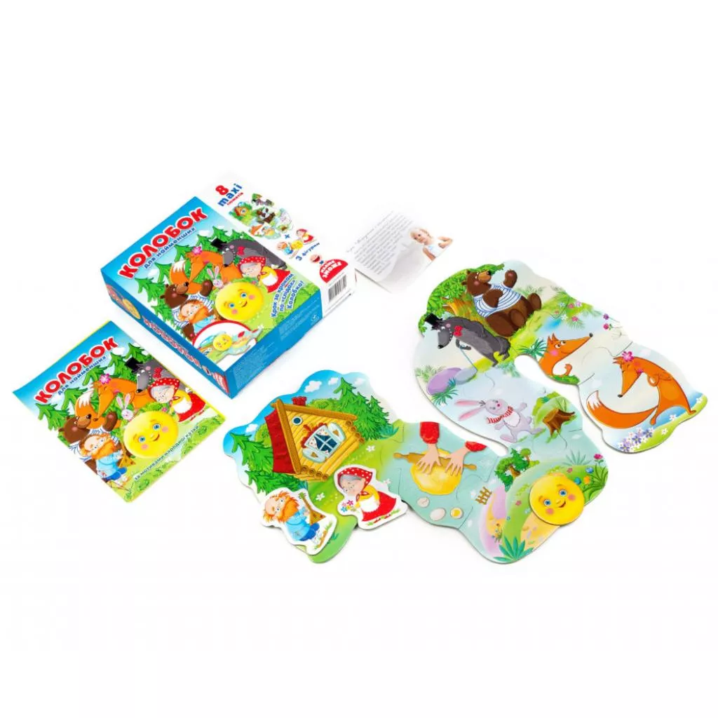 «Колобок» для самых маленьких зовет малыша поиграть со сказкой! Читайте ребенку слово за словом, а он пускай раскладывает историю на своем столе. А где же дед и баба? Без устали ищут Колобка. Подключайте в игру картонные фигурки, пускай они путешествует по сюжету. Когда детали собраны, давайте всё переиграем! «Открыла Лиса широко рот, и… НЕ СЪЕЛА Колобка!».