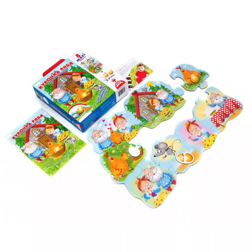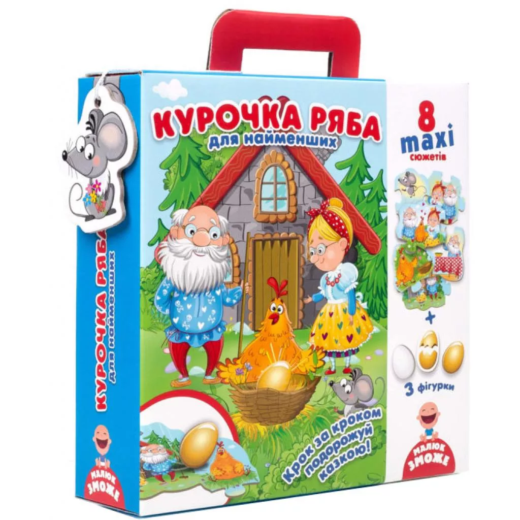«Курочка Ряба» для самых маленьких зовет малыша поиграть со сказкой! Читайте ребенку слово за словом, а он пускай раскладывает историю на своем столе. Вот Ряба снесла золотое яичко, потом оно разбилось, теперь яичко простое. Подключайте в игру картонные фигурки, пускай они сопровождают сюжет. Когда детали собраны, сыграем в обратном направлении! «Снесла курочка яичко не золотое, а простое. И оно разбилось…».