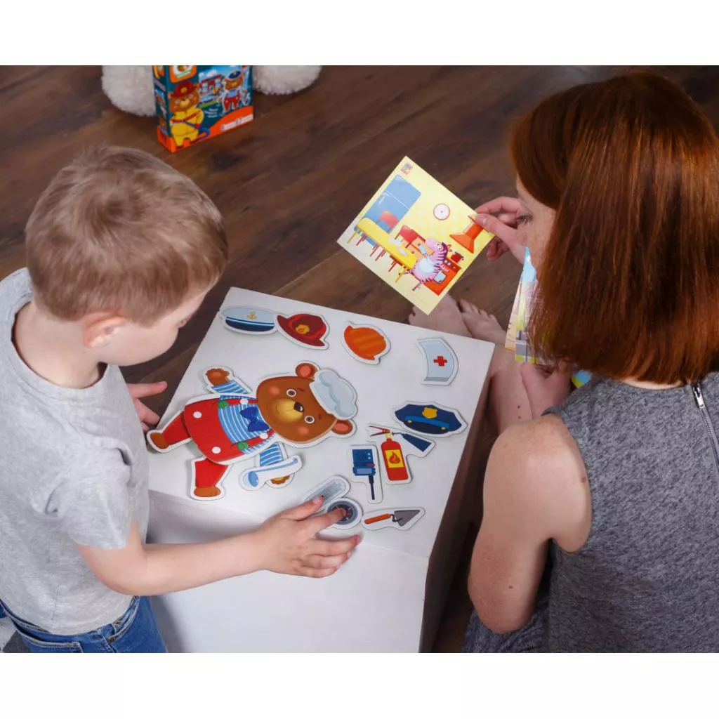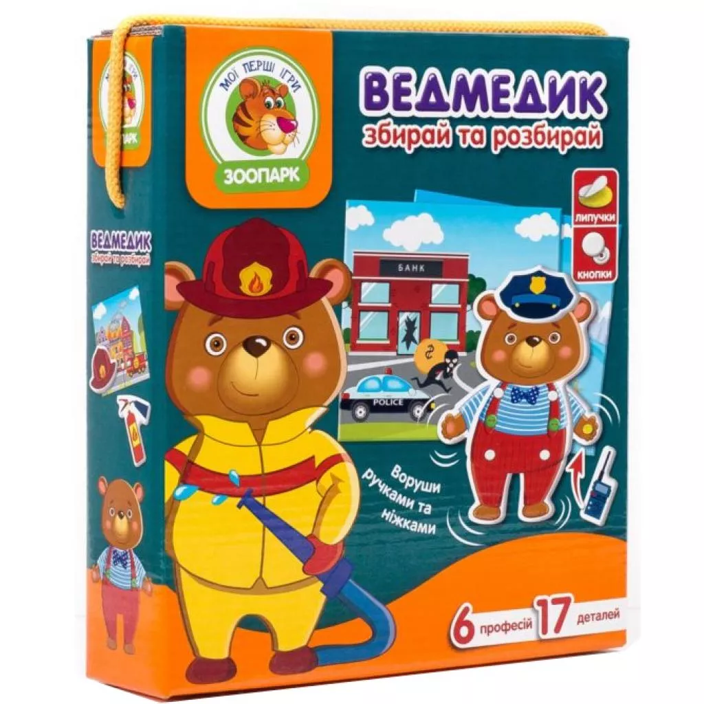 Профессии бывают такие разные: полицейский, врач, пожарный, повар. Каждая из них уникальна и очень важна! Хотите узнать о них больше? В этом вам поможет игра с подвижными деталями «Мишка»!