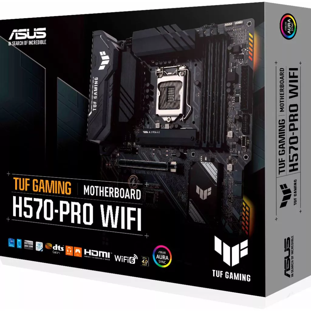 Крепкий. Стабильное. надежный и стабильный. ASUS TUF GAMING H570-PRO WIFI сочетает и совмещает в себе все основные элементы новейших процессоров Intel с игровыми функциями и доказанной надежностью. Эта материнская плата, оснащен и укомплектованная компонентами военного уровня, усовершенствованным решением по питанию и комплексной системой охлаждения, обеспечивает надежную и стабильную производительность для марафонских игр. С эстетической точки зрения, TUF GAMING H570-PRO WIFI имеет новый логотип TUF Gaming и включает простые геометрические элементы дизайна, отражающие надежность и стабильность, присущие серии (модельного ряда) TUF Gaming.