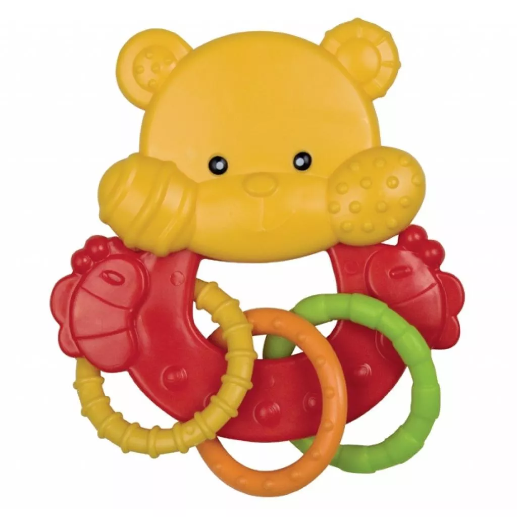 Погремушку легко и удобно держать в маленьких ручках. Разнообразные формы и цвета стимулируют воображение ребенка и способствуют его развитию. Он изучает и исследует разнообразные предметы с помощью рук или ротика. Игрушка изготовлена из прочных и безопасных материалов без острых краев.