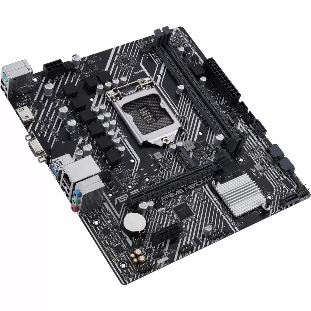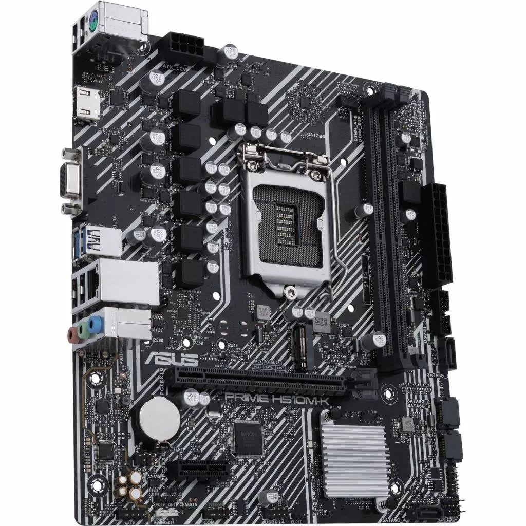 Asus PRIME H510M-K - материнская плата с чипсетом Intel H510. оснащен и укомплектована процессорным разъемом LGA 1200, выполнена в форм-факторе micro-ATX, а потому оптимизирована для компактных систем.