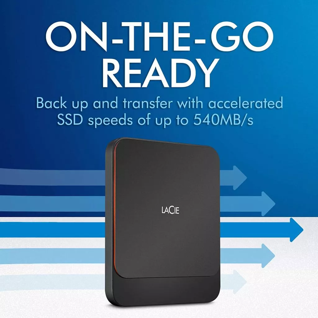 LaCie Portable SSD — быстрый, надежный и стабильный, компактный внешний твердотельный накопитель. Испытайте быстрое редактирование, резервное копирование и передачу с максимально и в полном объемей скоростью до 540 МБ/с. Храните в высоком разрешении исходные файлы, изображения и видео. Наслаждайтесь универсальной совместимостью с Mac, Windows, USB-C и USB 3.0. Путешествуйте уверенно с внешним твердотельным накопителем, который помогает перемещать данные из точки A в точку B максимально и в полном объеме быстро, безопасно и без усилий.