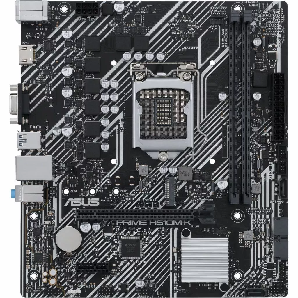 Asus PRIME H510M-K - материнская плата с чипсетом Intel H510. Оснащена процессорным разъемом LGA 1200, выполнена в форм-факторе micro-ATX, а потому оптимизирована для компактных систем.