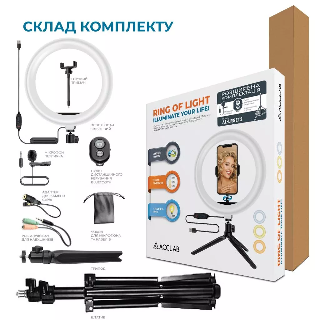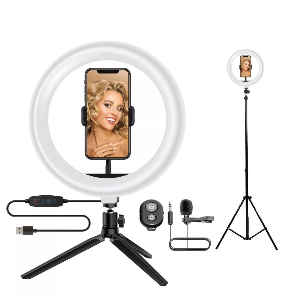 | Комплектация | держатель телефона, кольцевая LED лампа, петличный микрофон, пульт ДУ |