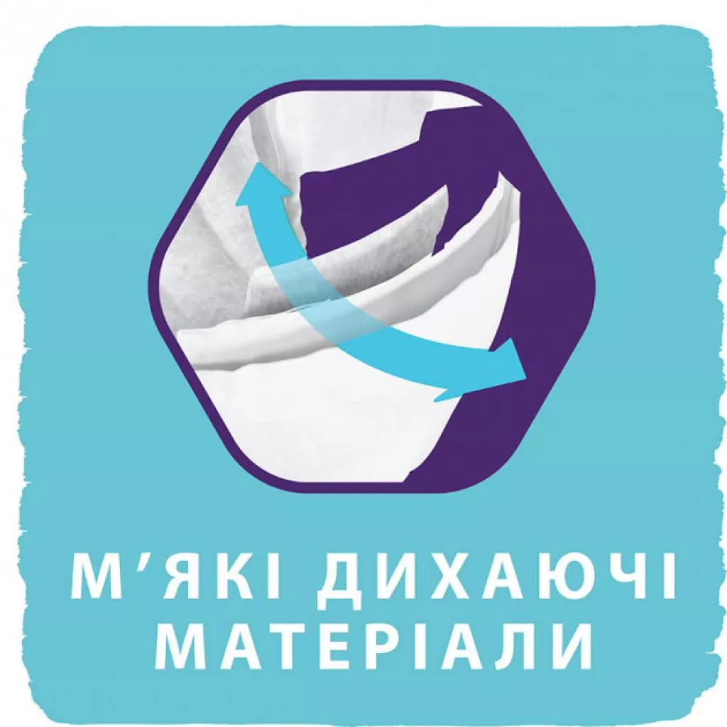 Эластичный поясок сзади, тянущиеся застежки и мягкие резиночки вокруг ножек дают возможность надежно фиксировать подгузник, абсолютно не стесняя движений крохи. А зауженные спереди и сзади боковинки помогают ему прекрасно сидеть, идеально повторяя фигурку малыша.