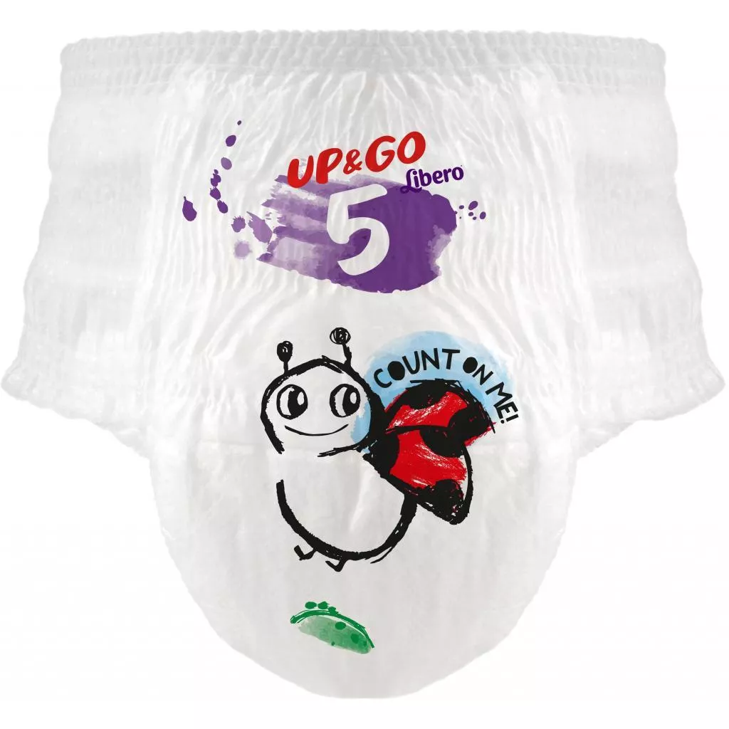 Смена подгузника не будет скучной с Libero Up&Go, ведь в каждой упаковке вы найдете 5 разных дизайнов трусиков!