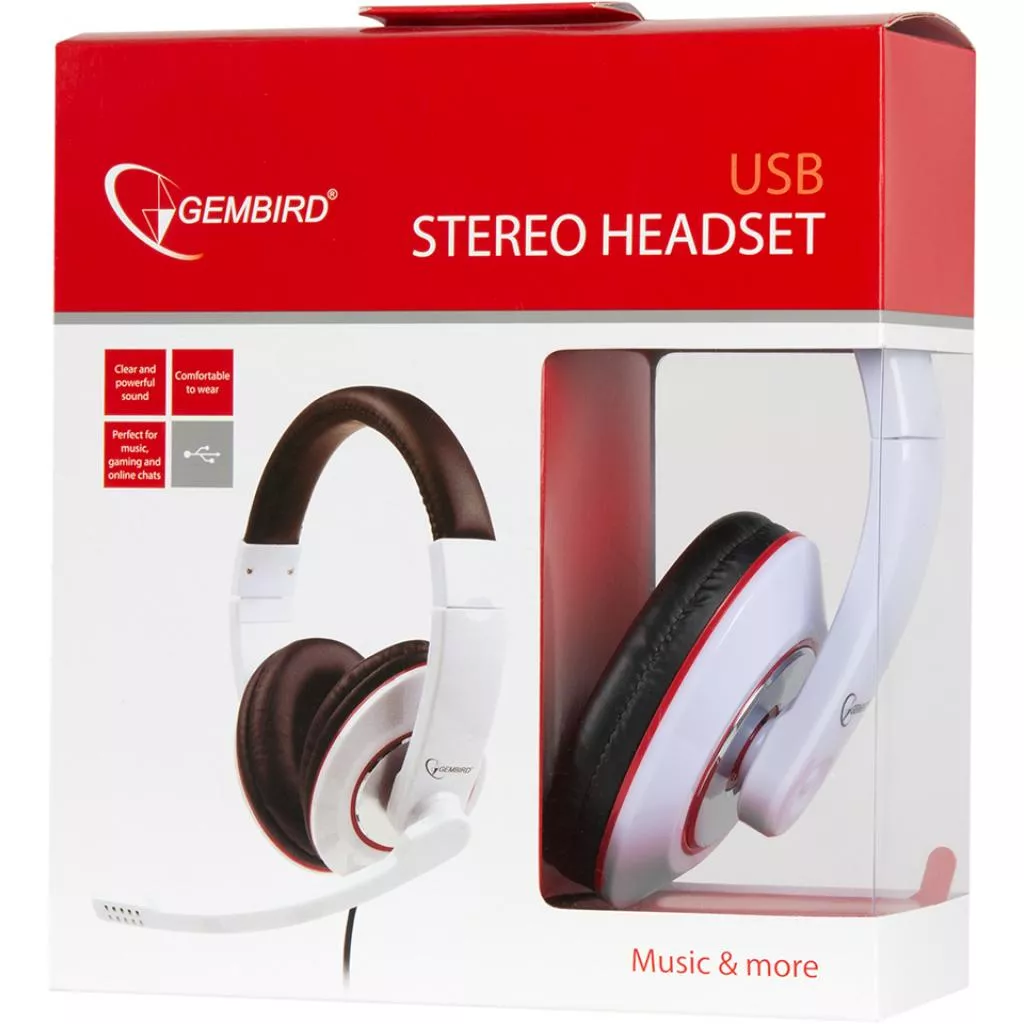 Гарнитура GEMBIRD MHS-U-001 White USB (MHS-U-001-GW)- мягкое оголовье регулируется по высоте, поэтому изделие подойдет для людей разных возрастов. Большие трехсантиметровые динамики, скрытые под амбушюрами из кожезаменителя с одной стороны, приятны для ушей, а с другой - подарят удивительное качество звучания. Микрофон встроен в конструкцию гарнитуры, поэтому вы сможете общаться с друзьями и родными по сети не подключая к компьютеру множество разных устройств, ведь тут все собрано в одном!
