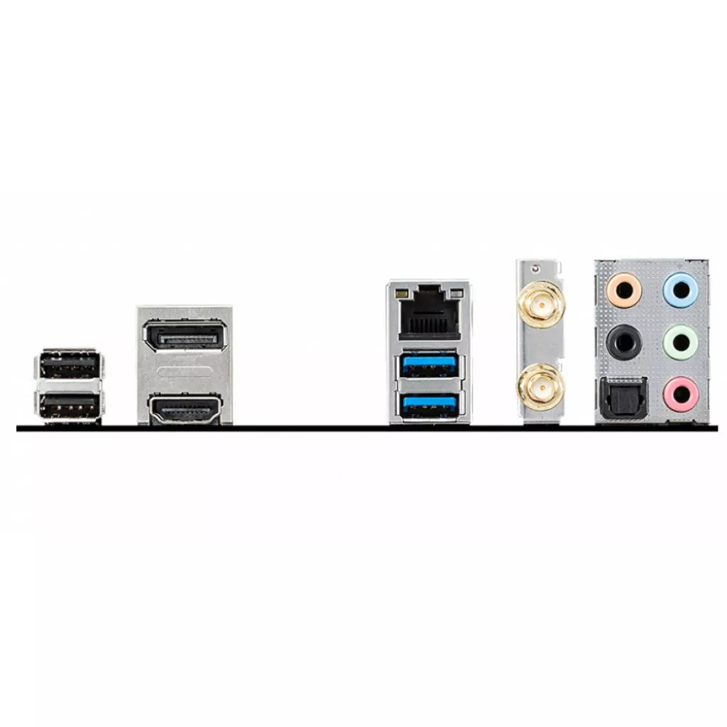 Внешние порты | 1 x optical SPDIF out, 1 x DisplayPort, 1 x RJ45, 2 x Antenna Ports, 2 x USB 2.0, 2 x USB 3.2 Gen 1 Type-A, 5 x Audio |