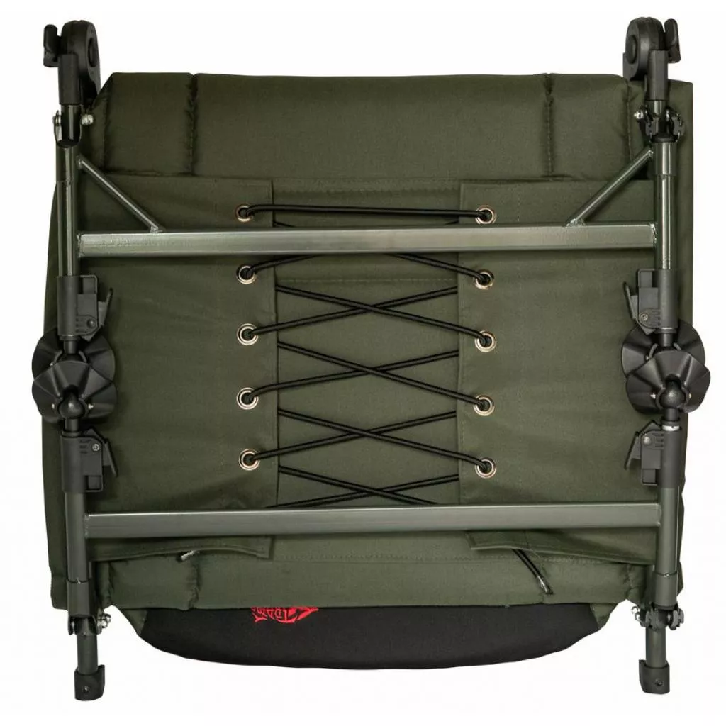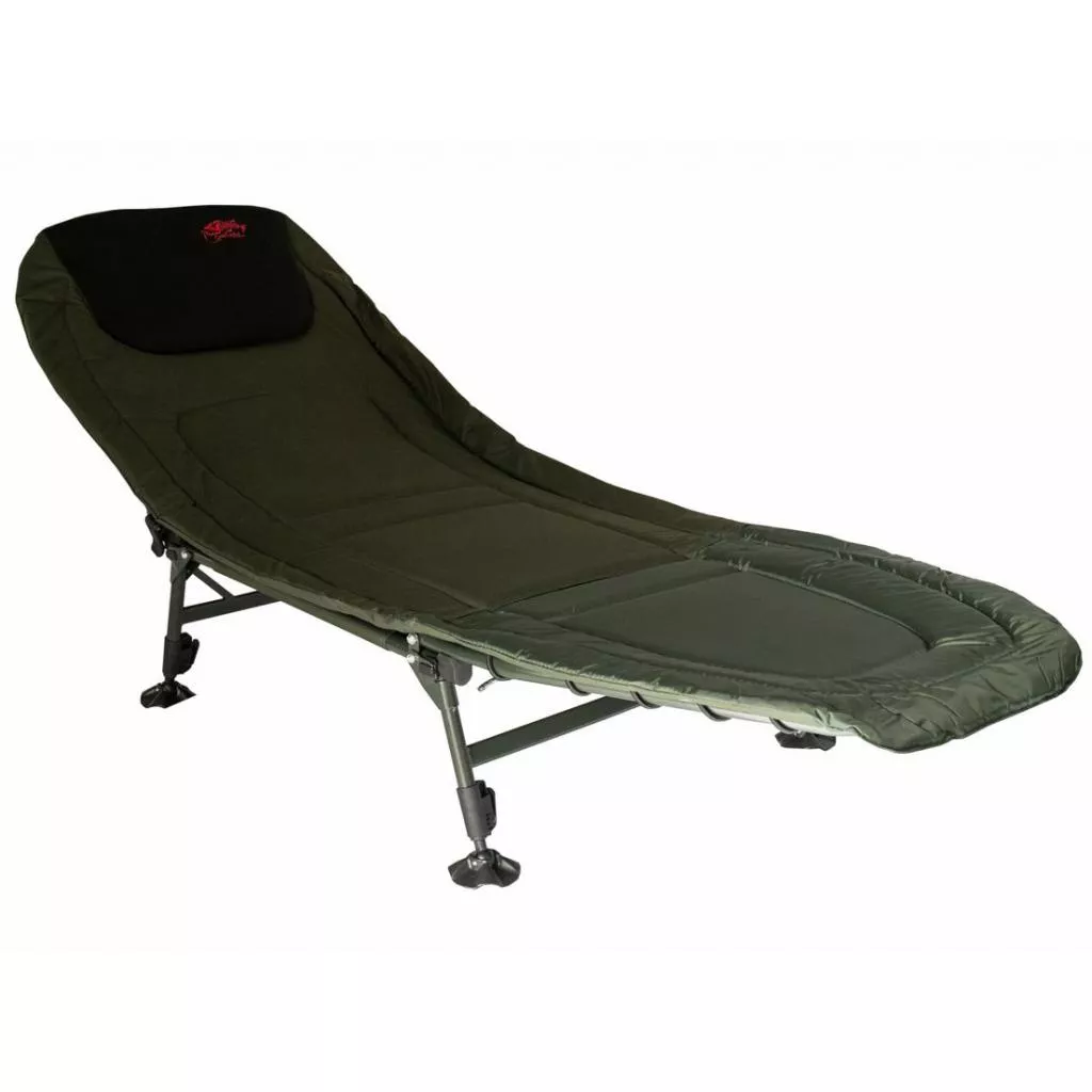 Простая в использовании и очень надежная (благодаря стальному каркасу) карповая раскладушка, способная выдержать нагрузку до 150 кг. Благодаря регулируемому наклону спинки модель может использоваться и как карповая кровать, и как рыбацкое кресло одновременно. Ножки кровати легко складываются и регулируются на необходимую высоту, имеют хорошую устойчивость на Ппрактически любой поверхности. Матрас выполнен из устойчивого к влаге и грязи прочного многослойного полиэстера с PVC покрытием.
