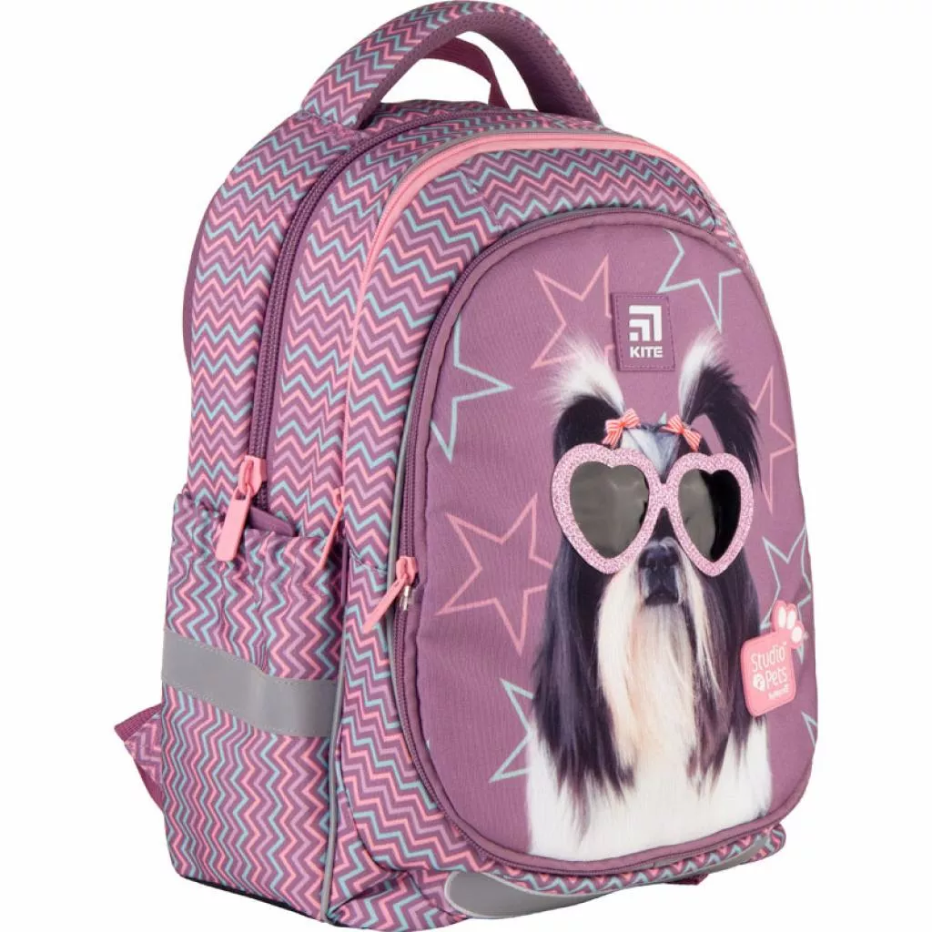 Оформление в лицензии Studio Pets с милыми животными порадует девочек. Это уникальная модель, в которой можно самостоятельно менять дизайн, перестегивая 2 сменные панели. Гламурная собачка в блестящих глиттерных очках или очаровательный котеночек в объемных очках из фетра? Выбирать рисунок под настроение и «переодевать» ранец – так здорово!