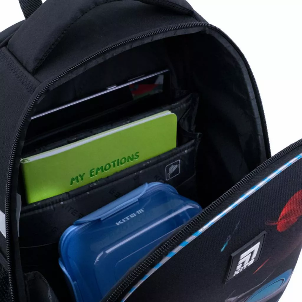 Школьный рюкзак Kite K21-555S-5 – каркасная ортопедическая модель для начальной школы, соединяющая в себе компактность и вместительность. Рюкзак выполнен из прочного полиэстера и оформлен в ярком дизайне. Переднюю панель украшает принт с космическим кораблем. Каждый рюкзак для мальчиков Kite – это возможность подобрать модель в любимой тематике ребенка, чтобы учебный процесс был увлекательнее.