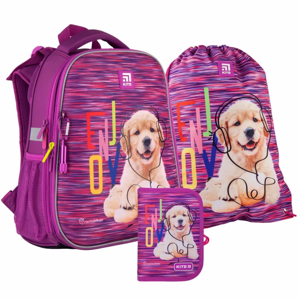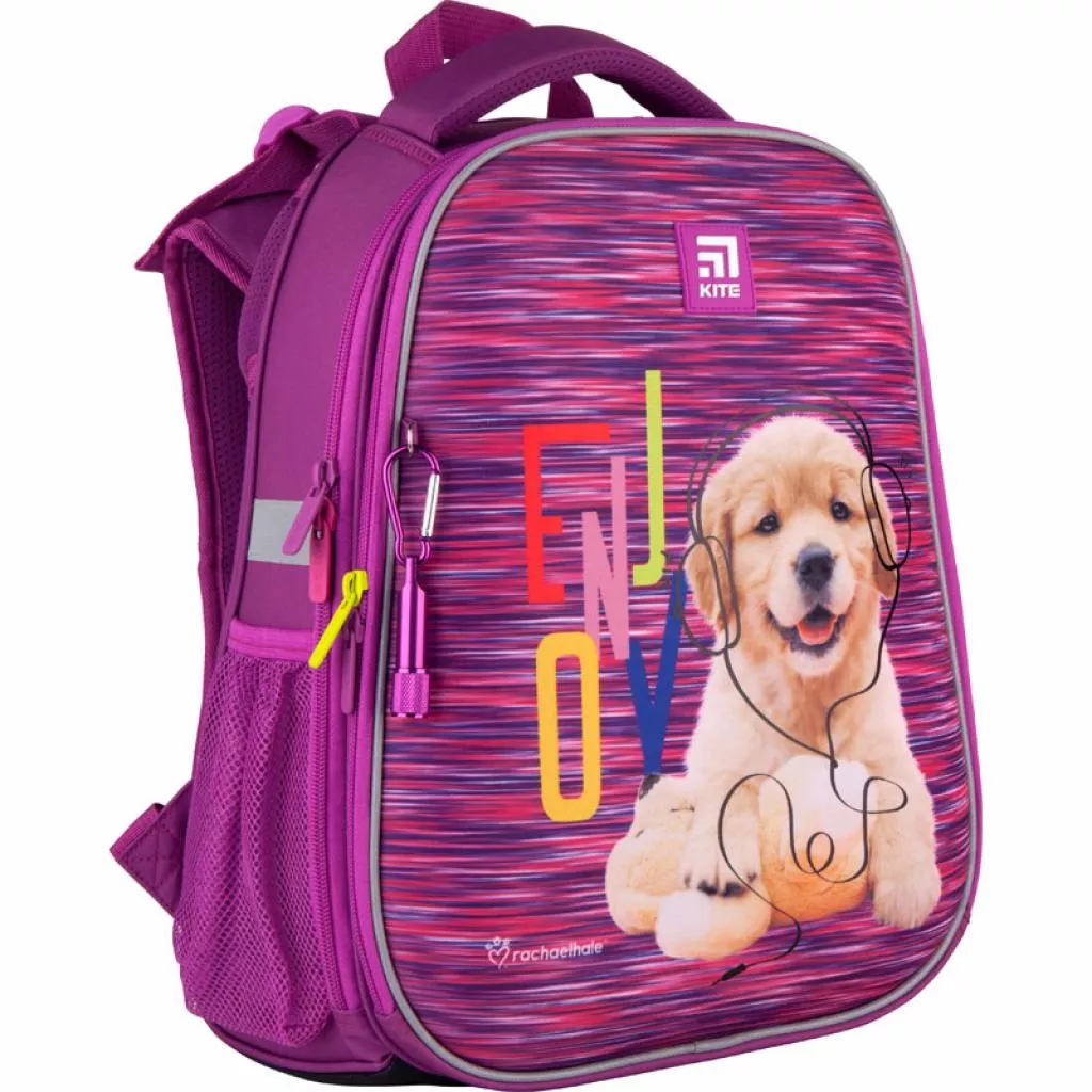 Яркий, красочный и жизнерадостный дизайн в лицензии Rachael Hale будет каждый день поднимать настроение и вдохновлять учиться с удовольствием. Переднюю панель украшает очаровательный пушистый щеночек. Он любознательный, активный и творческий: об этом говорит его образ в стилизованных наушниках и открытый дружелюбный взгляд. Пестрая цветовая гамма и подвеска-фонарик делают рюкзак особенным.