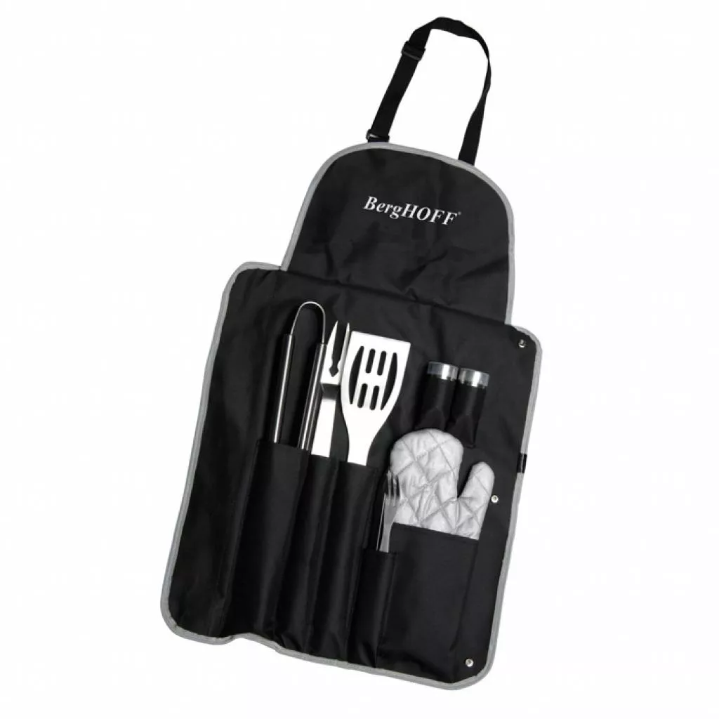 Подробнее о доставке| Комплектация | вилка для бифштекса 23 см - 1 шт., вилка для мяса 44 см - 1 шт., лопатка с отверстиями 43 см - 1 шт., нож для бифштекса 24.5 см - 1 шт., перечница 6 см - 1 шт., перчатка - 1 шт., солонка 6 см - 1 шт., фартук - 1 шт., щипцы 44 см - 1 шт. |