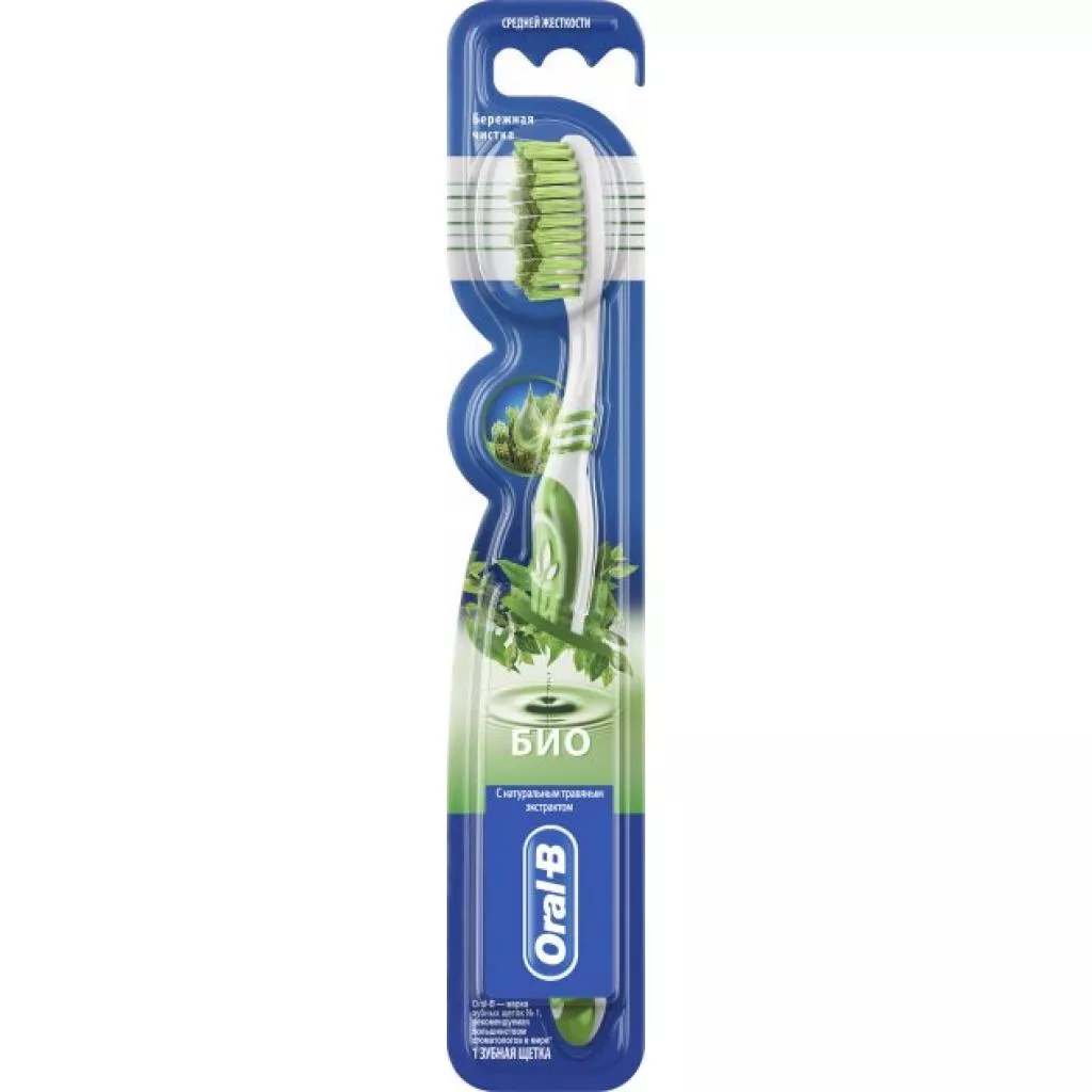 Зубная щетка мануальная Oral-B Био 40 эффективно очищает зубы и десны и проникает в пространство между зубами для удаления зубного налета. Подушечка для чистки языка на головке щетки очищает поверхность языка и щек.