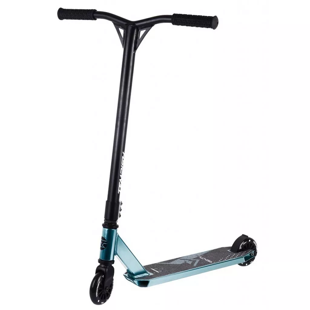 На самокат установлены колеса на спицевых дисках диаметром 100 мм, с геликом жесткостью 85А. Такой диаметр колес обеспечивает отличную маневренность, но жертвует скоростью. Гелик выполнен из мягкого термополиуретана, что в силу амортизационных свойств, делает его идеальным вариантом для асфальтированного покрытия.