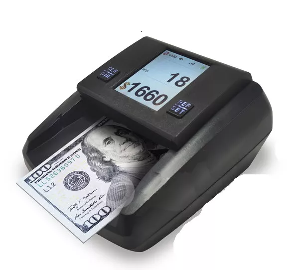 Детектор валют, купюр, банкнот PRO Moniron Dec ERGO. Автоматический детектор с проверкой гривен, долларов, евро и рублей. Виды детекции: инфракрасная детекция, ультрафиолетовая, магнитная, спектральный анализ краски, детекция по оптической плотности, детекция по размеру. Прошивка до 8 валют. Оснащена лотком вместимостью до 100 купюр. Проверка любой стороной и ориентацией.