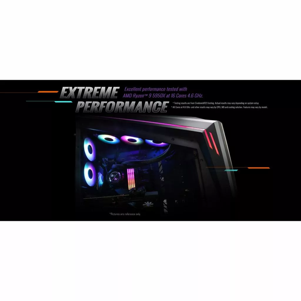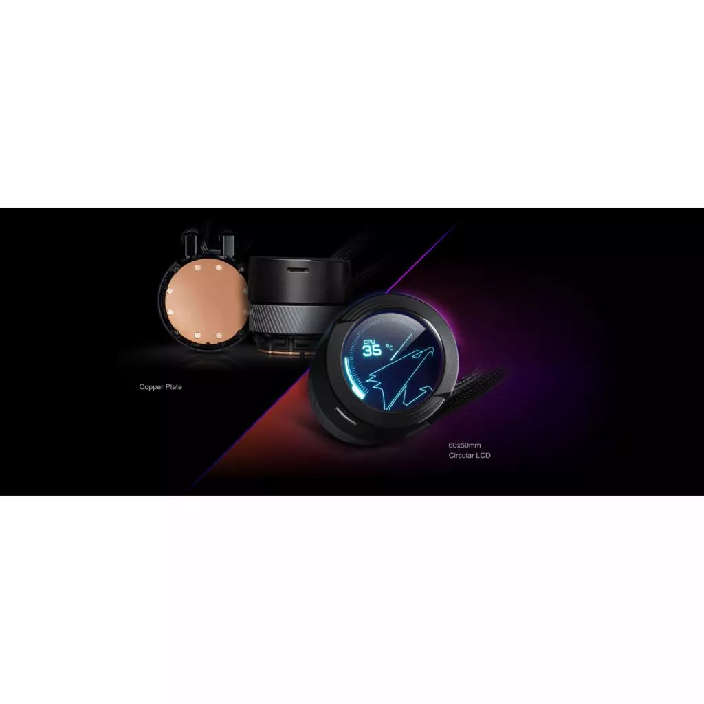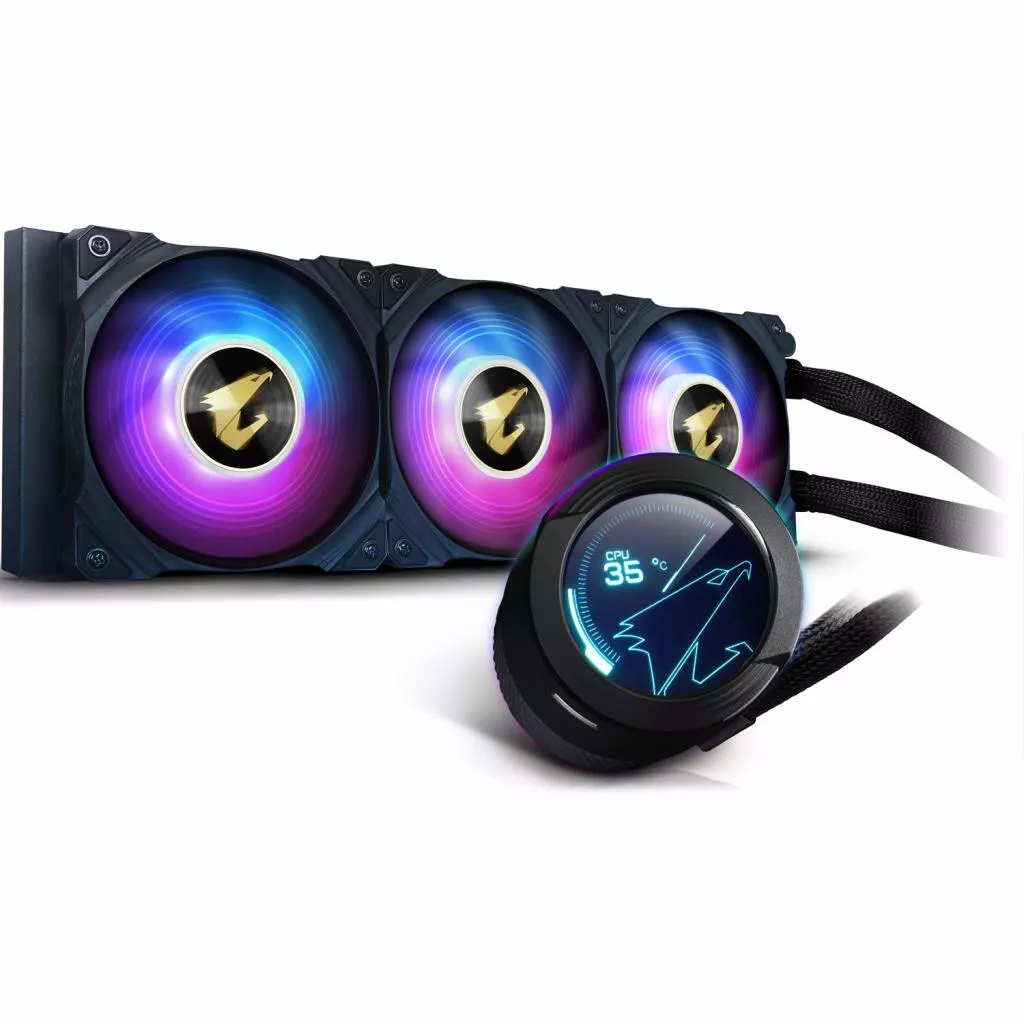 Система водяного охлаждения для процессора от компании Gigabyte. Она состоит из трех вентиляторов Graphene Nano Lubricant ARGB оснащен и укомплектованных ARGB-подсветкой. Поддерживает синхронизацию RGB FUSION 2.0 с другими устройствами AORUS.