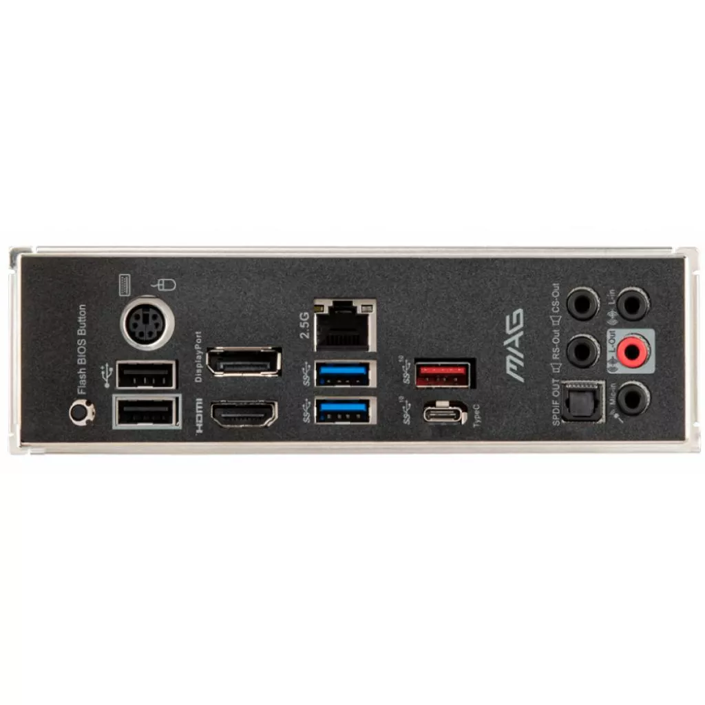| Наружные порты | 1 x coaxial SPDIF out, 1 x DisplayPort, 1 x Flash BIOS Button, 1 x HDMI, 1 x PS/2, 1 x RJ45, 1 x USB 3.2 Gen 2x2, 1 x USB 3.2 Gen2 Type-A, 2 x USB 2.0, 2 x USB 3.2 Gen 1 Type-A, 5 x Audio |
