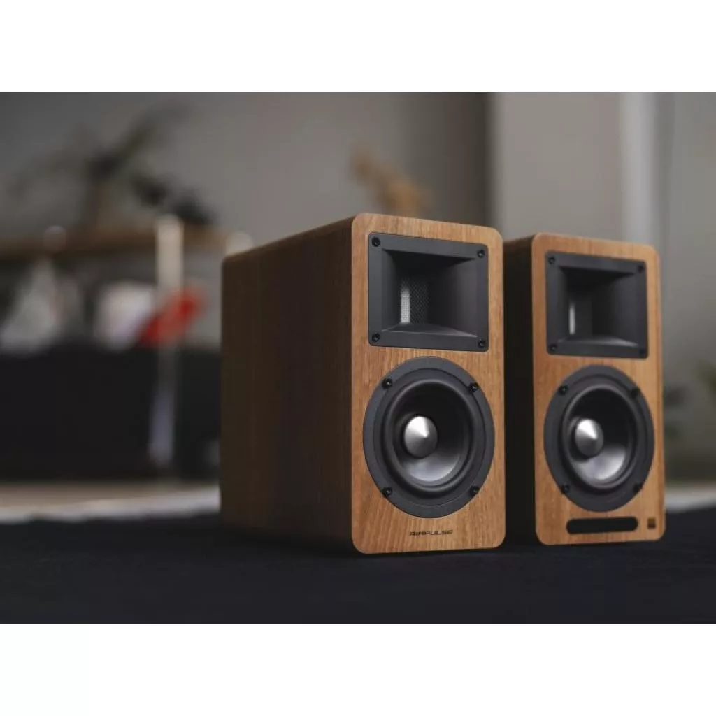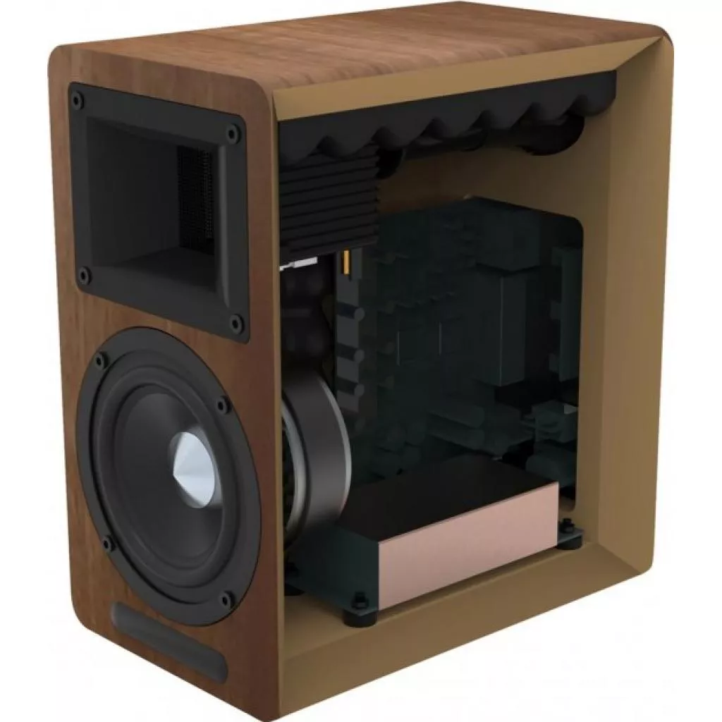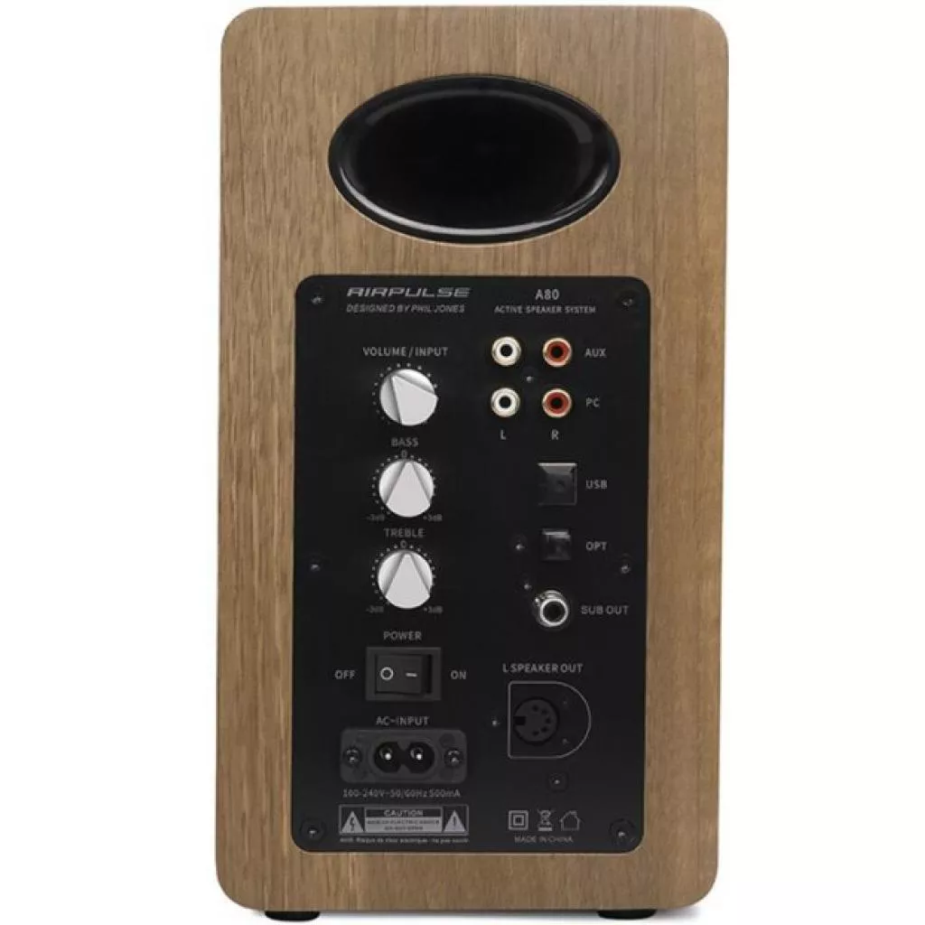 Корпус A80 изготовлен из высокопрочного MDF толщиной 18 мм с двумя вариантами отделки, лаковое голубое покрытие и отделка ореховым шпоном. Рупорный ленточный высокочастотник является отличительной особенностью всей серии Airpulse. Мидсаб диаметром 4.5 дюйма с диффузором из алюминиево-магниевого сплава гармонично работает в паре с ленточником.