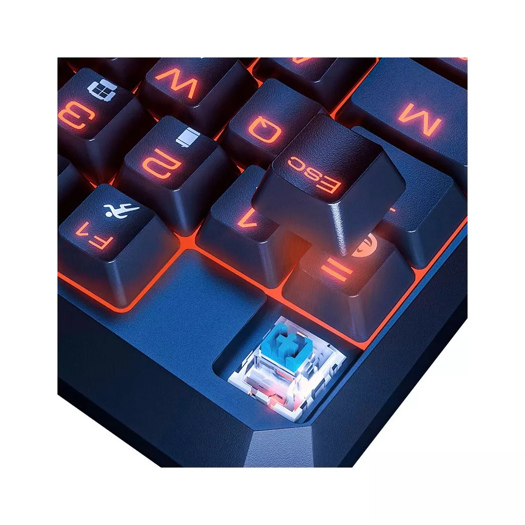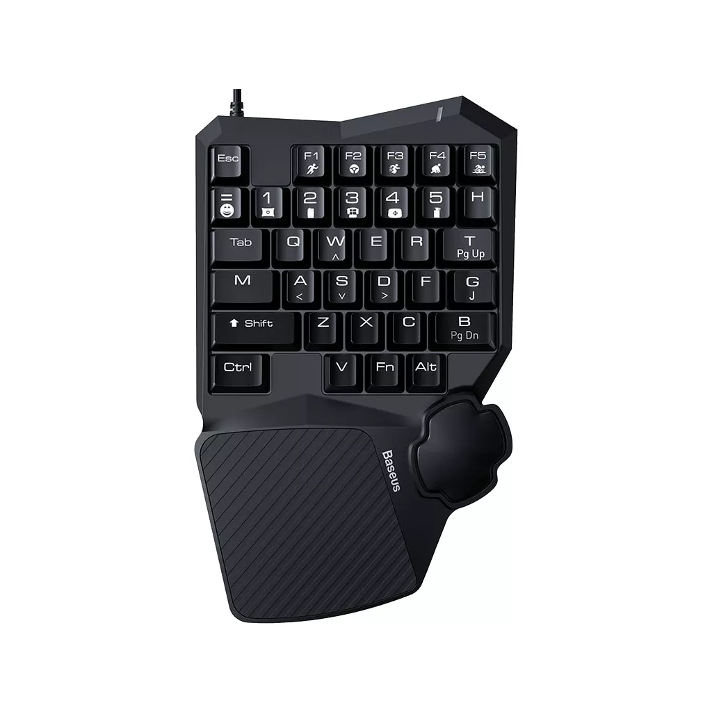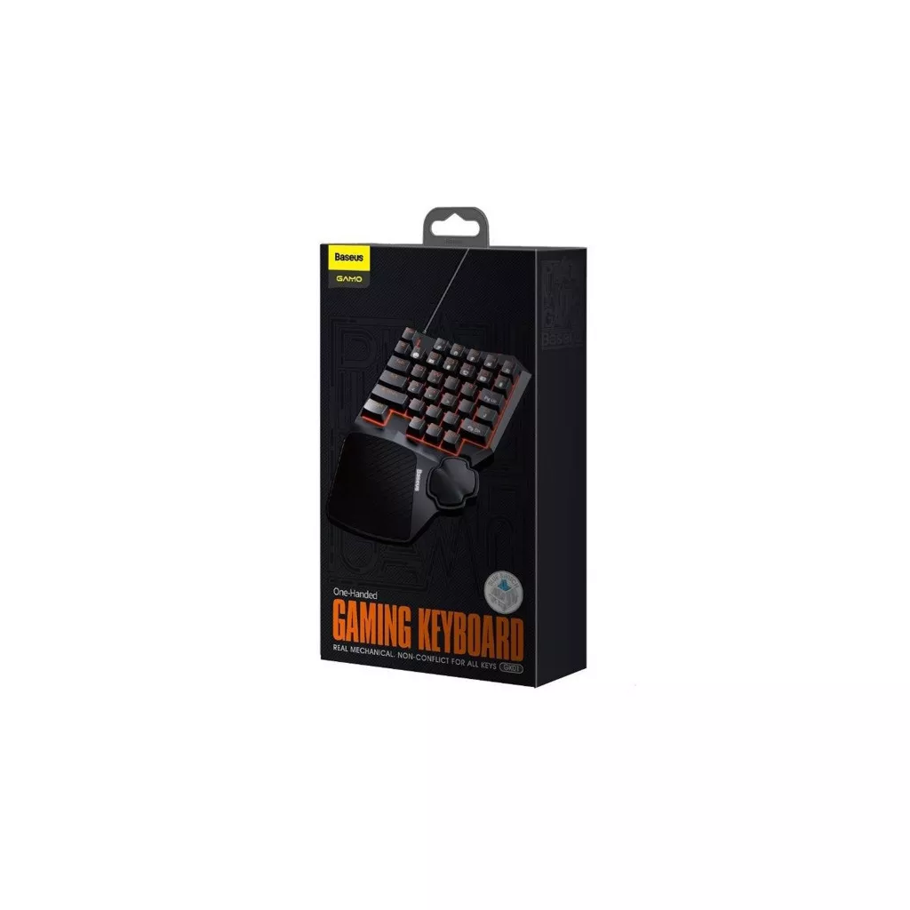 Предположить использование компьютера без подключенной клавиатуры просто невозможно. Не столь важно, любите ли вы игры, пишите статьи или общаетесь в социальных сетях — клавиатура самый простой способ набрать требуемые команды. Но и выбирать аксессуар стоит внимательно, в соответствии со своими задачами, понятиями об удобстве и красоте. Клавиатура Baseus GAMO One-Handed Gaming (GMGK01-01) порадует проверенным качеством исполнения, долговечностью и стильным дизайном. Модель геймерская, компактная, с небольшим весом и привычным расположением клавиш. Вопрос подключения и питания В первую очередь Baseus GAMO One-Handed Gaming (GMGK01-01) предназначена для подключения к компьютеру или лэптопу. Но клавиатуру можно применять со многими устройствами, просто идеально модель подходит для планшета. Подключение устройства проводное, при помощи интерфейса USB. Так что перед заказом убедитесь, что ваш компьютер снабжен соответствующим портом, и он свободен. Особенности конструкции и дизайна Тип клавиш механический, что обеспечит продолжительное время использования, плавный ход кнопок и точность нажатий. Других важных особенностей немного: подсветка клавиш, манипулятор прокрутки. Цвет модели черный.