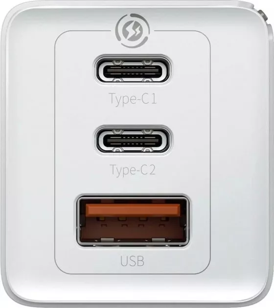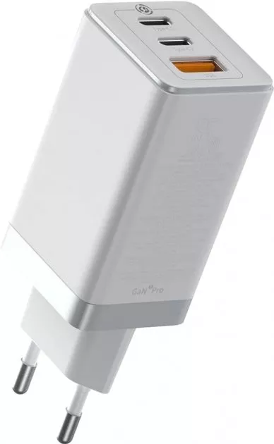 Тип сетевое. Выходная мощность 65 Вт. Стандарты быстрой зарядки: Huawei SCP, QC 3.0, QC 4.0+, Samsung AFC, USB-PD 3.0. Выходное напряжение 5...20 В. Выходной ток на 1 порт, до: 3.25 А. Количество USB-портов: 3. Тип USB: Type-A, Type-C. Кабель в комплекте: USB-C → USB-C. Длина кабеля: 1 м. Размеры: 107 × 32 × 36 мм. Цвет: белый