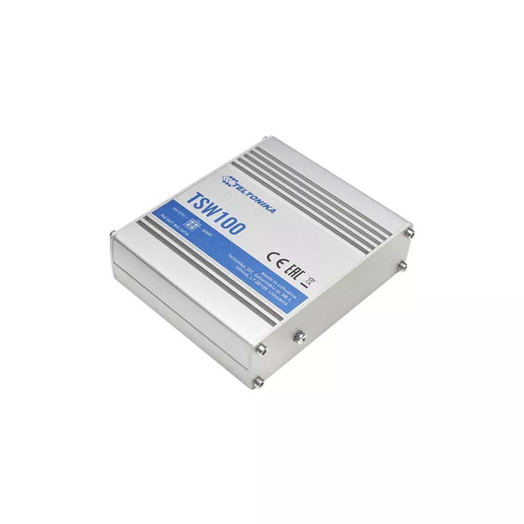 TSW100 – первый промышленный неуправляемый коммутатор от Teltonika Networks. TSW100 оснащен пятью портами Gigabit Ethernet, четыре из которых поддерживают стандарты Power-over-Ethernet (PoE) IEEE802.3af и IEEE802.3at. Этот надежный промышленный коммутатор идеально подходит для профессиональных приложений с высокой пропускной способностью, где необходимо обеспечить как надежное соединение для передачи данных, так и источник питания.