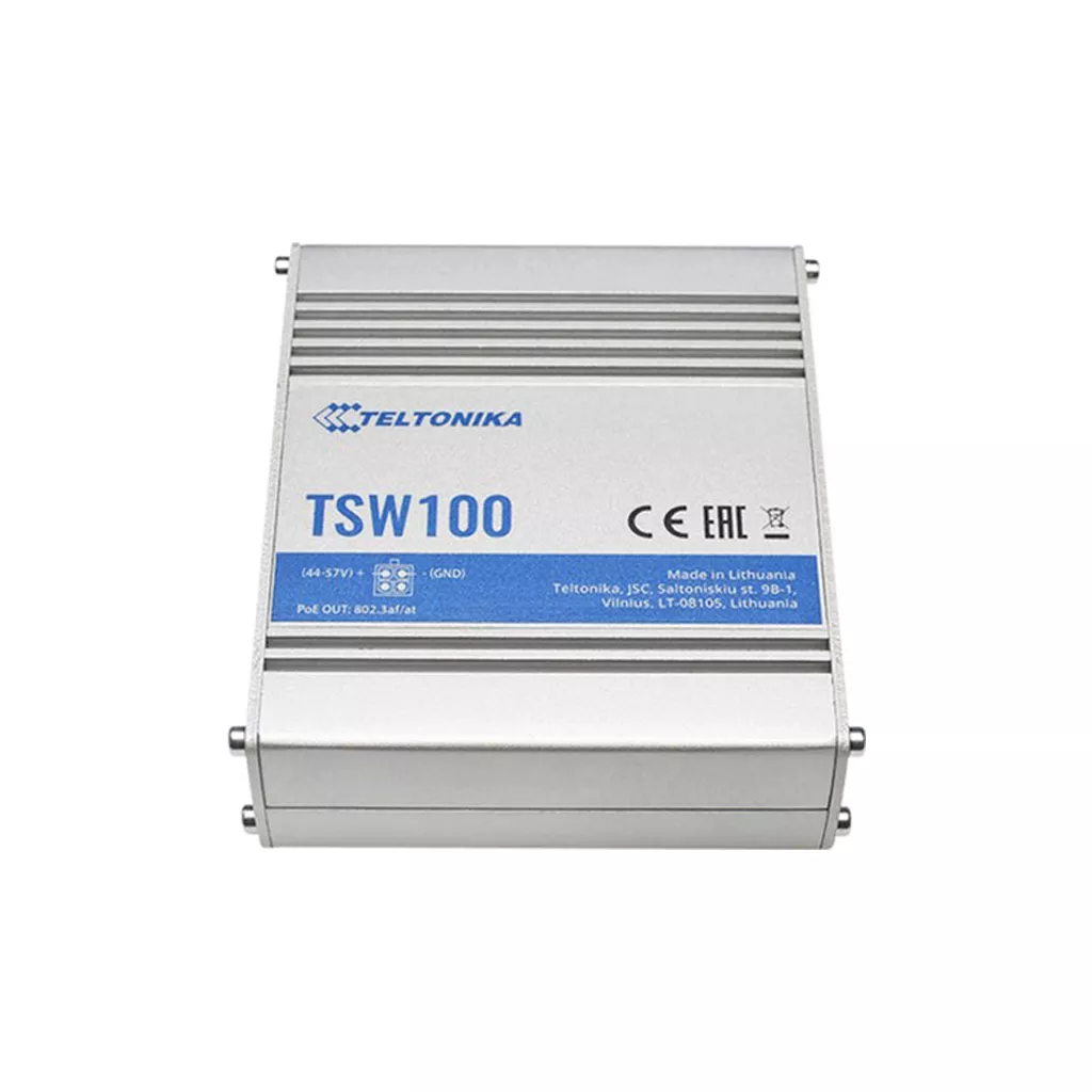 TSW100 – первый промышленный неуправляемый коммутатор от Teltonika Networks. TSW100 оснащен пятью портами Gigabit Ethernet, четыре из которых поддерживают стандарты Power-over-Ethernet (PoE) IEEE802.3af и IEEE802.3at.