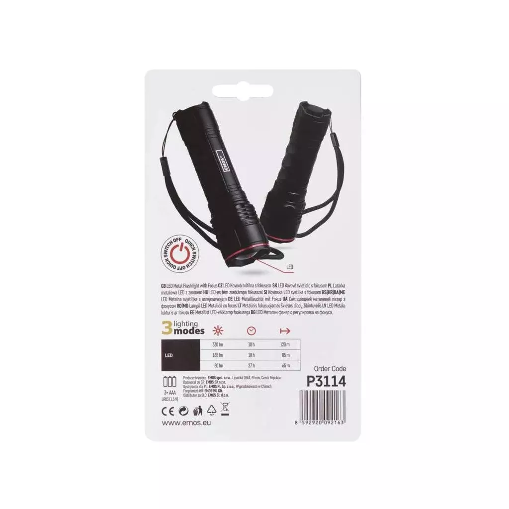 ФонарьP3114 из качественной линейки алюминиевых ручных фонарей чешского производителя EMOS. В данной модели используется линза для обеспечения равномерного распределения светового потока при изменении точки фокусировки. Как результат – луч фокусируется равномерно и без темных пятен. Прорезиненная клавиша включения предохраняет фонарь от попадания влаги.