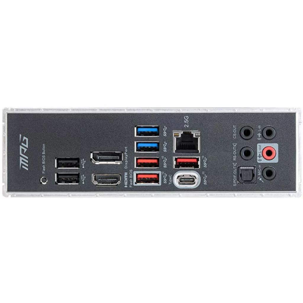 Внешние порты | 2 x USB 3.2 Gen 1 Type-A, 3 x USB 3.2 Gen 2 Type-A, 1 x USB 3.2 Gen 2x2, 1 x Flash BIOS Button, 1 x RJ45, 2 x USB 2.0, 1 x PS/2, 1 x HDMI, 1 x DisplayPort, 1 x optical SPDIF out |