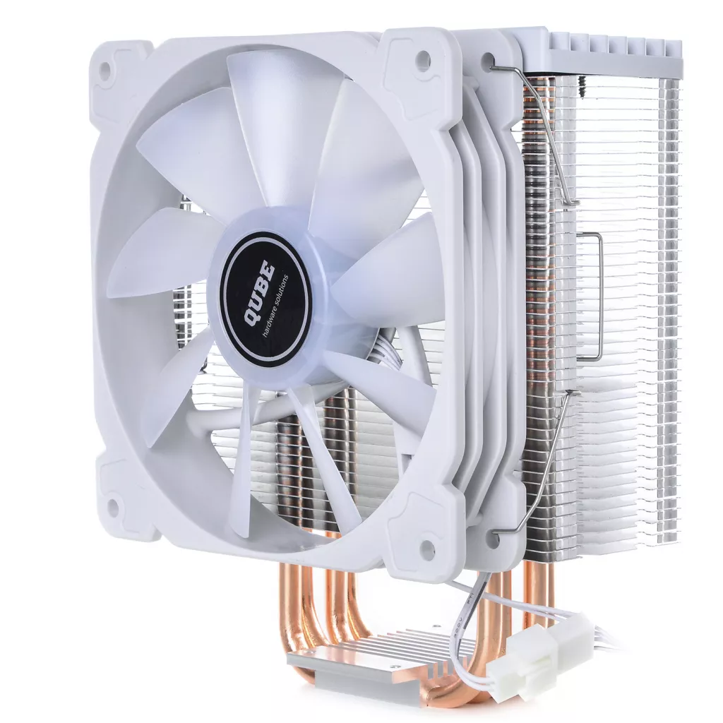 QB-OL1000W – это эффективный башенный кулер белого цвета для охлаждения центрального процессора от нового бренда QUBE.