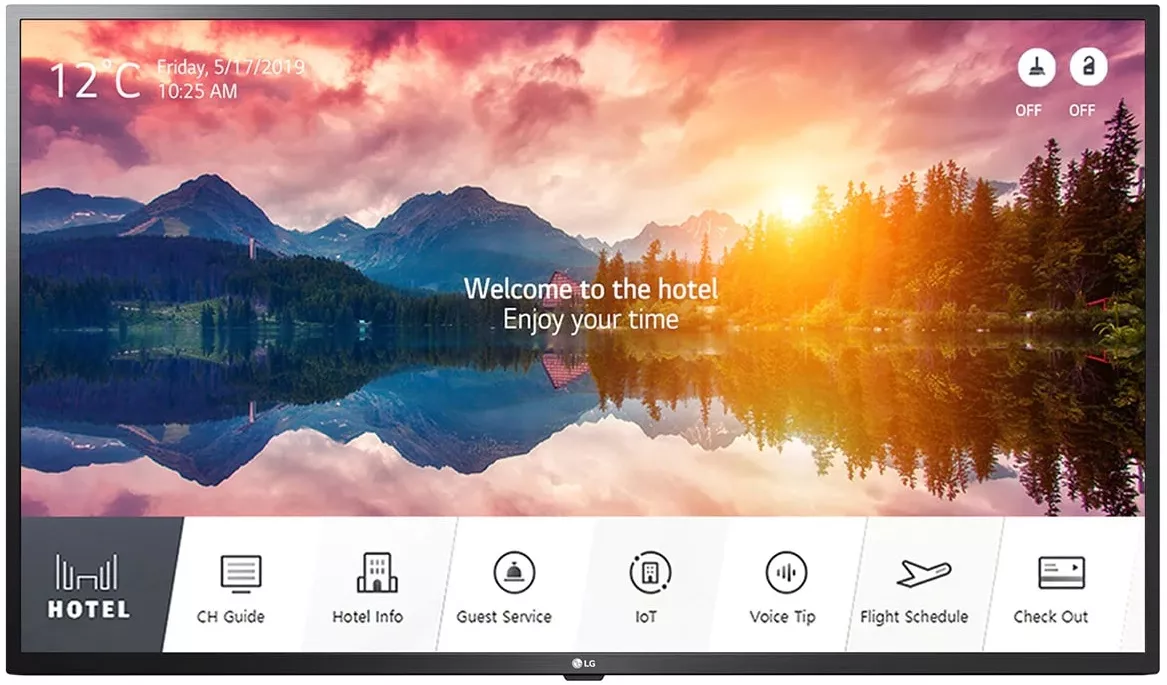 Телевизоры Commercial Lite позволяют разнообразить поздравительные сообщения в гостиничных номерах по с помощью различных изображений*, чтобы клиенты чувствовали себя еще комфортнее.