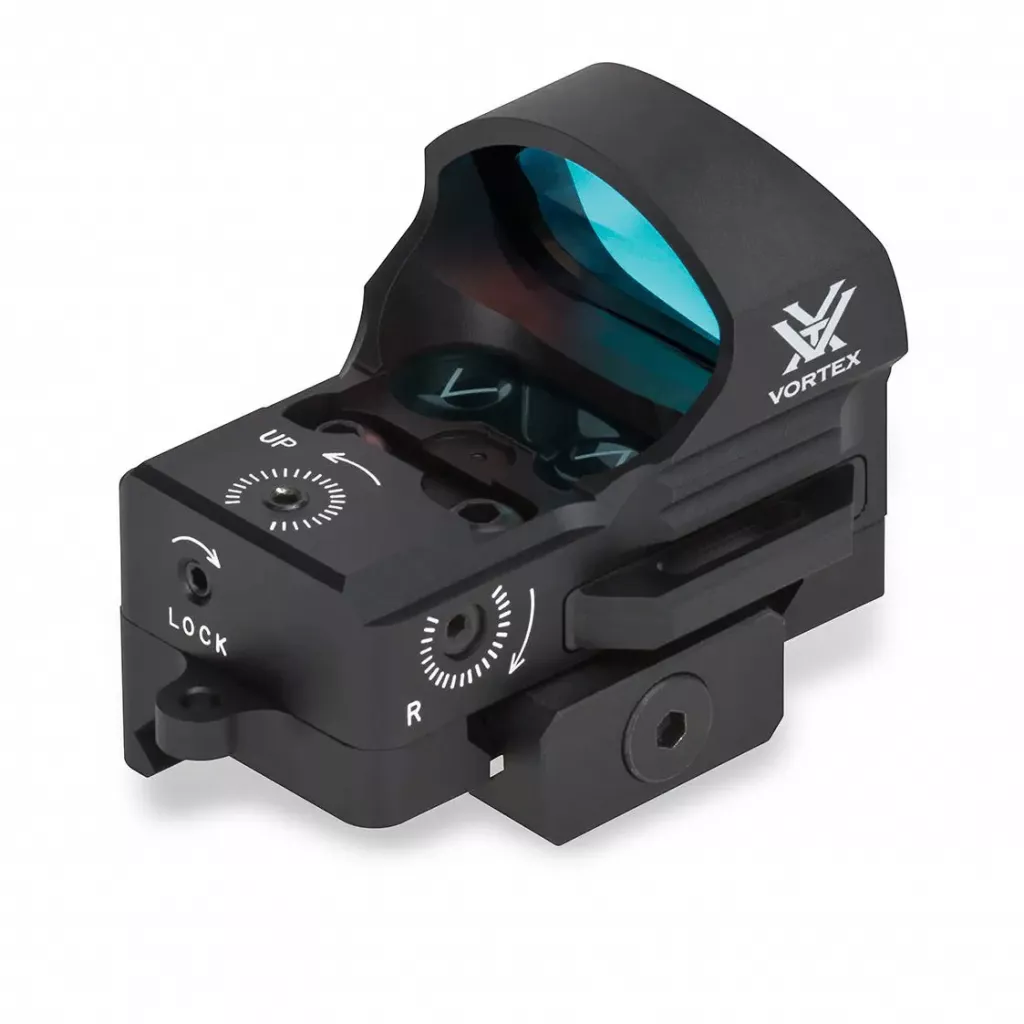 Прицел коллиматора Vortex Razor - это многоцелевой открытый прицел хай-энд класса. Большое окно, защищенное крепким корпусом из алюминиевого сплава, обеспечивает четкое и контрастное от края к краю изображение с широким полем зрения. Находящийся сбоку батарейный отсек позволяет заменить батарею, не снимая прицел с оружия. Прочный и долговечный, этот прицел весит всего 68 г вместе с крепежом. всех наружных поверхностях линз увеличивает светопропускаемость оптических элементов.