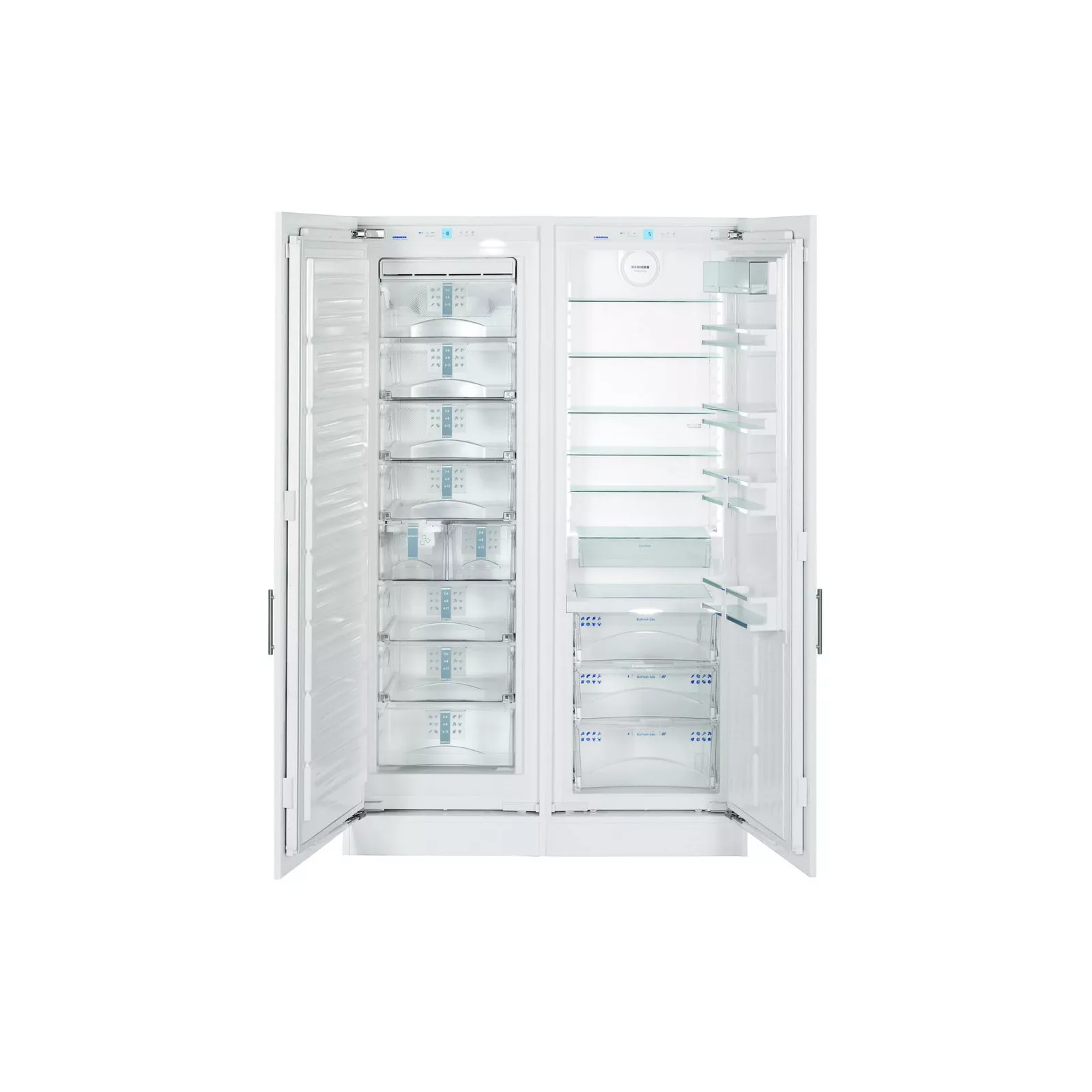 Встроенный двухкамерный холодильник Liebherr SBS 70I4 – это холодильник премиум класса. Расположение камер по принципу Side-by-Side делает его максимально и в полном объеме удобным и вместительным. Завидный объем холодильной камеры 344л и морозильной камеры 248л позволят хранить все продукты в наиболее удобном месте и с наиболее подходящим для этого климатом. Следует отметить, что благодаря использованию энергосберегающих технологий холод внутри холодильника сохраняется до 34 часов при отключении электроэнергии. При этом расход электроэнергии составляет всего 376 кВтч/год, за что ему и был присвоен класс энергопотребления A++.