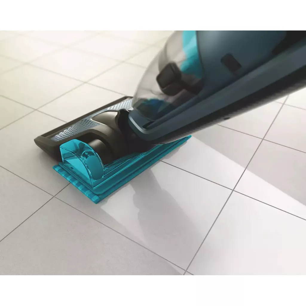 Очень удобным функционалом стал съемный блок влажной уборки. Он крепится снутри надежным методом соединения с магнитами. Влажный режим ориентирован на увлажнение любого типа поверхности, что позволяет избавиться от, как минимум, одной фазы во время уборки – мытья полов. Также любые загрязнения, даже самые сложные, подчинятся вам намного быстрее с применением представленной опции. наиболее загрязненные участки. Щетка моторизована, поэтому всасывание воздуха через нее дает ощутимо лучшие результаты. Особенно когда дело касается таких сложных поверхностей как ковровые, к которым «намертво» прилипают пух и шерсть.