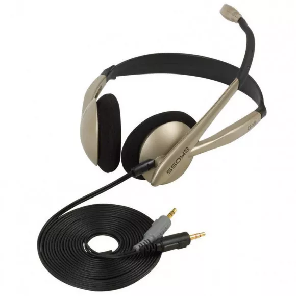 В комплекте есть два съемных кабеля: 2,4-метровый удлиненный кабель с микрофоном на гибкой штанге отдельными разъемами для микрофона и наушников) и стандартный кабель со встроенным микрофоном Koss 1-touch длиной 1,2 м (со стандартным штекером 3,5 мм).