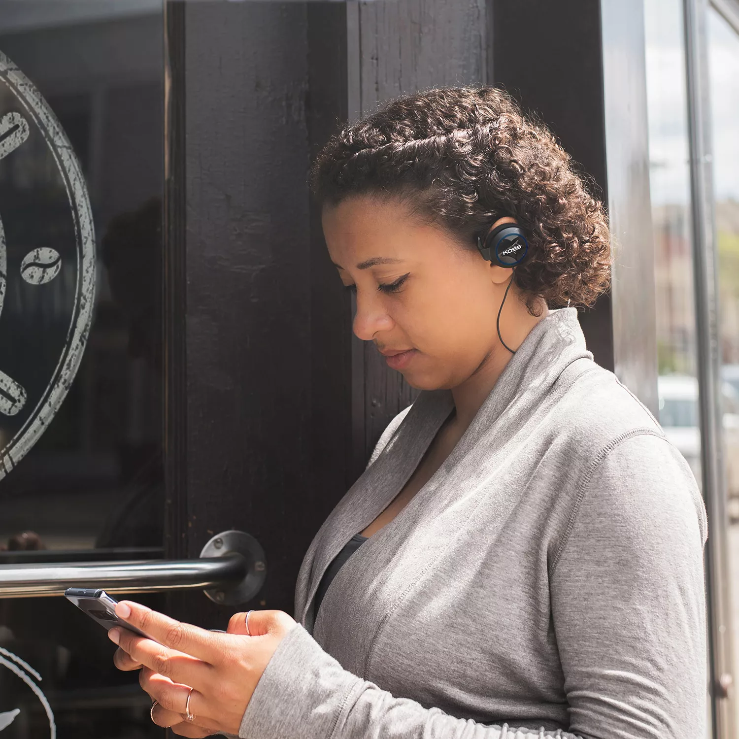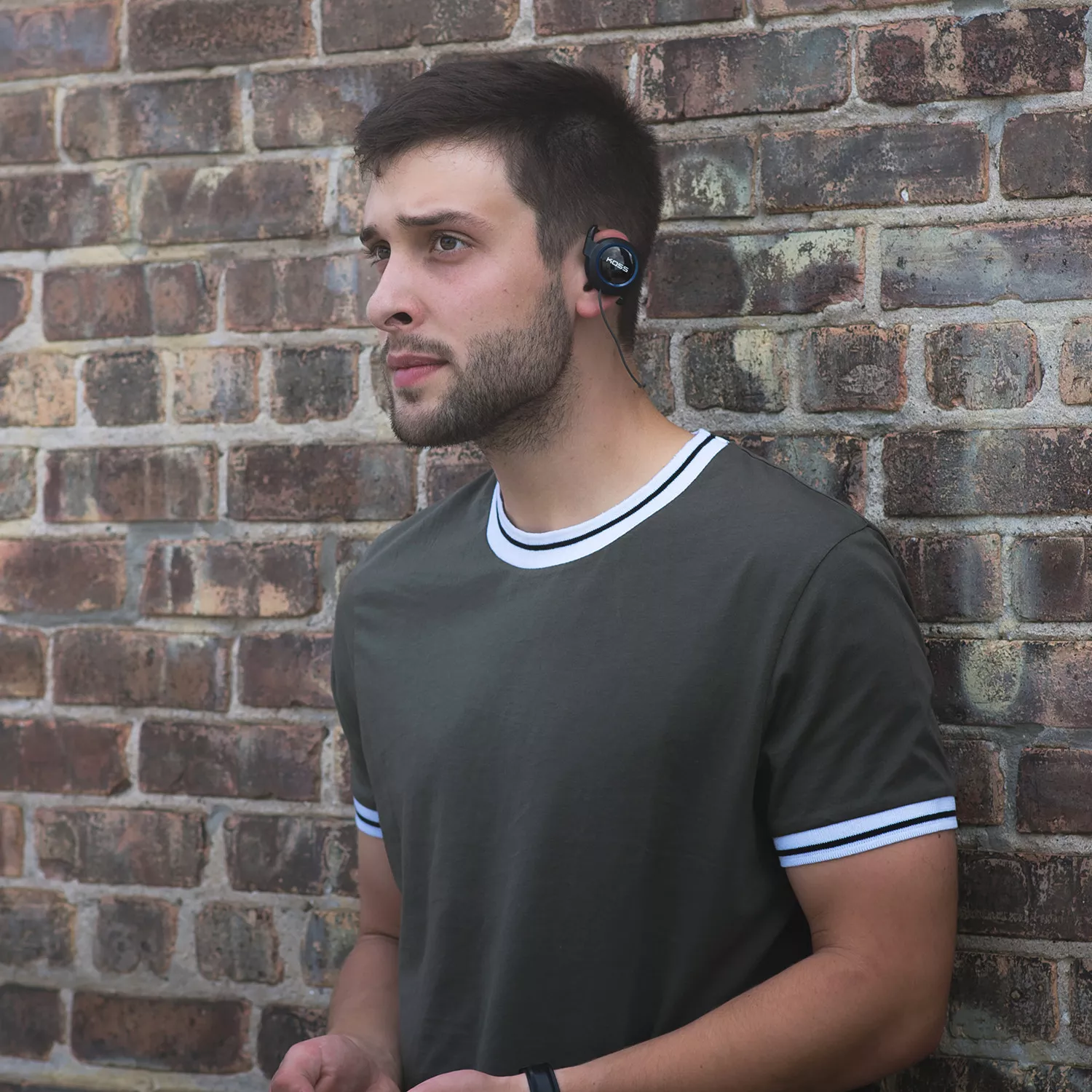 Вращающиеся заушины обеспечивают идеальную посадку и фиксацию наушников. Наушники соединены между собой кабелем, длина которого регулируется с помощью зажима.
