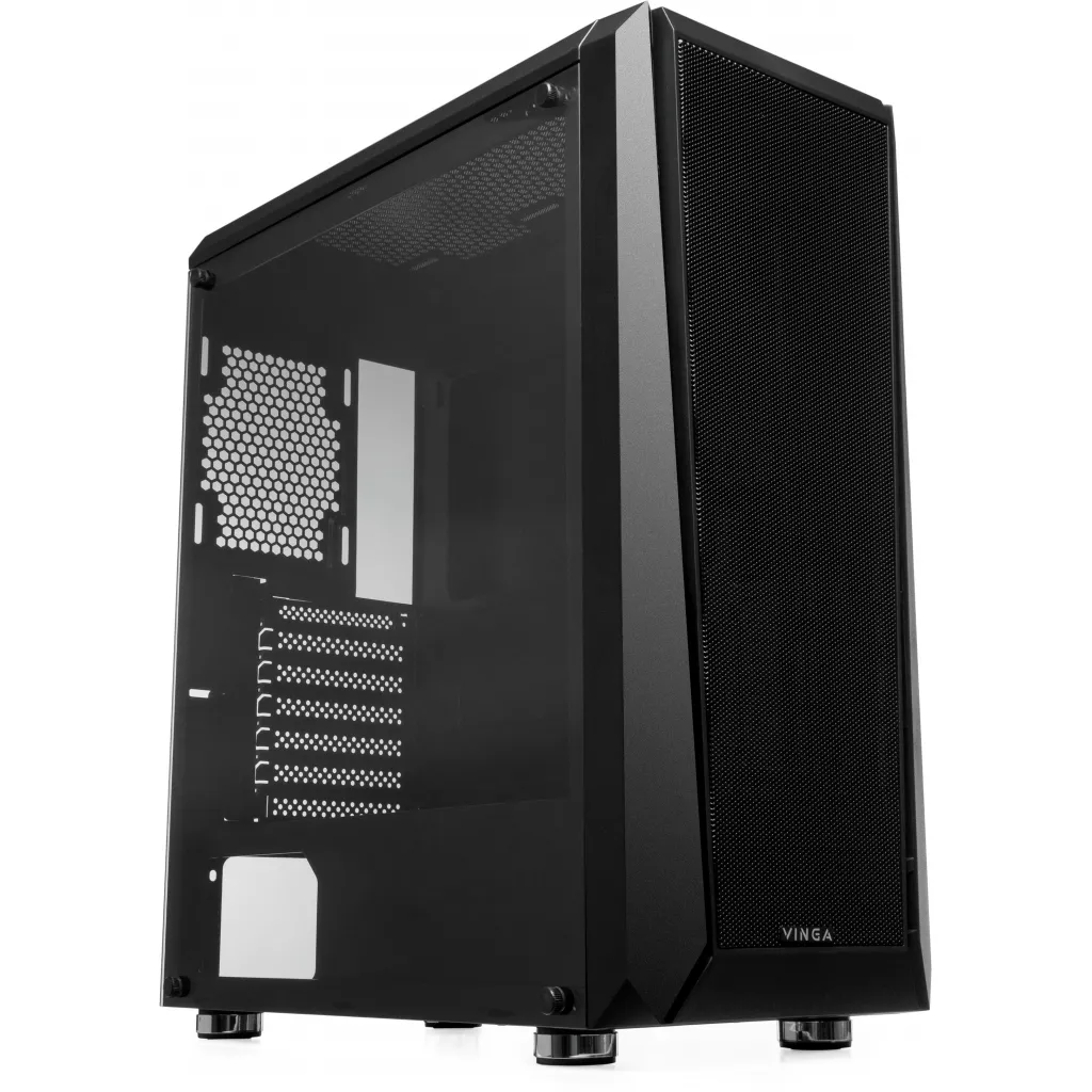 Корпус Vinga Sage позволит сконструировать неплохой геймерский компьютер: система вентиляции с вентиляционной решеткой обеспечивает нормальный температурный режим даже при полной загрузке. У корпуса есть боковой панели из закаленного стекла – она прозрачна, поэтому пользователь может увидеть, как работает «начинка» корпуса. Место для блока питания находится на дне корпуса, что помогает погасить вибрацию и сделать уровень шума ниже даже при полной нагрузке. На корпусе расположены кнопки управления питанием и загрузкой системы, а также входы для наушников, порты USB и входы для микрофона. максимально и в полном объеме допустимый размер карт для установки – до 350 мм, максимально и в полном объеме приемлемая высота кулера – 160 мм.