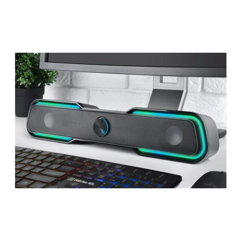 < Современный дизайн с многоцветной подсветкой, сенсорное управление, металлическая сетка, регулятор громкости со встроенным светодиодным индикатором станет идеальным дополнением Вашего интерьера.Рейтинг страницы: 4.8