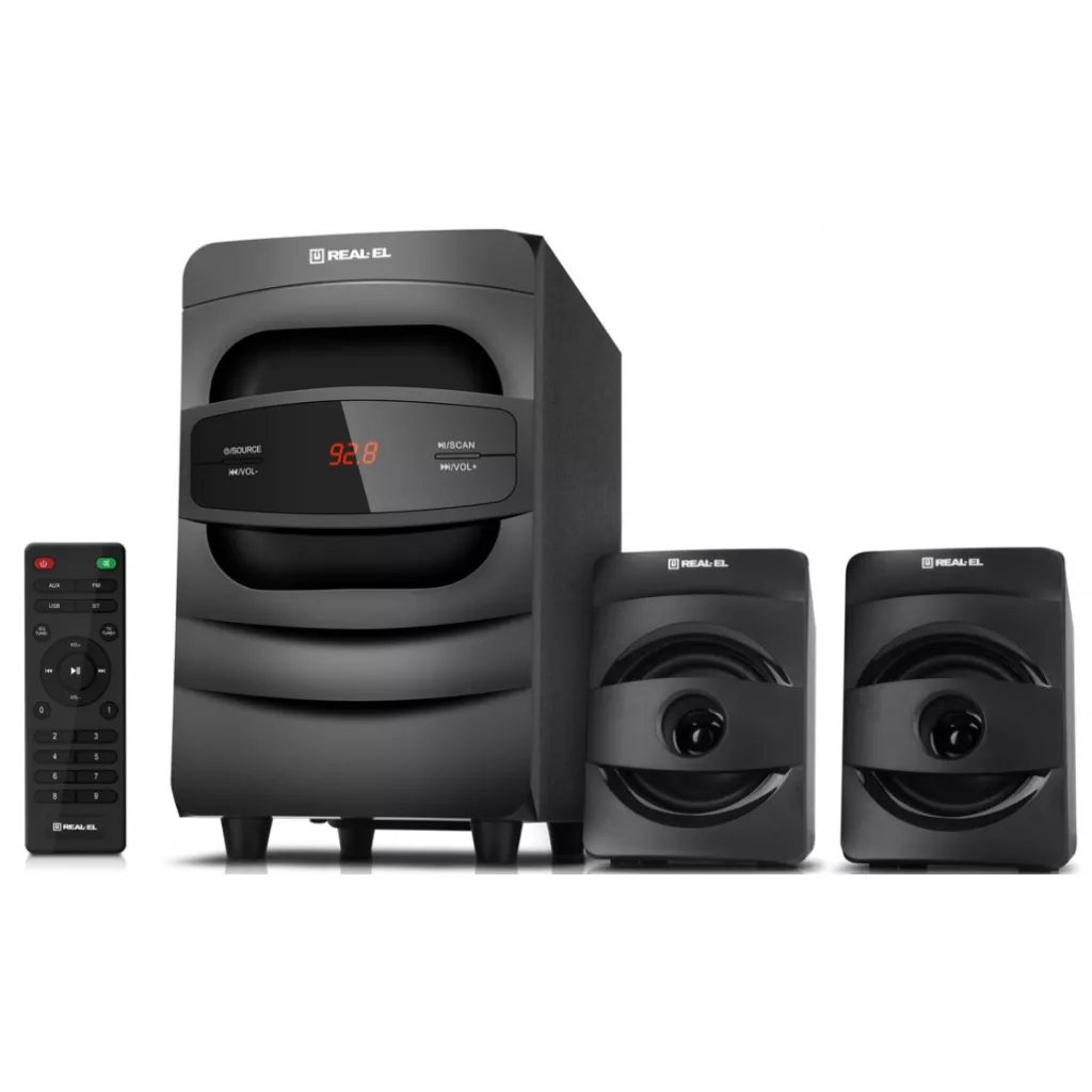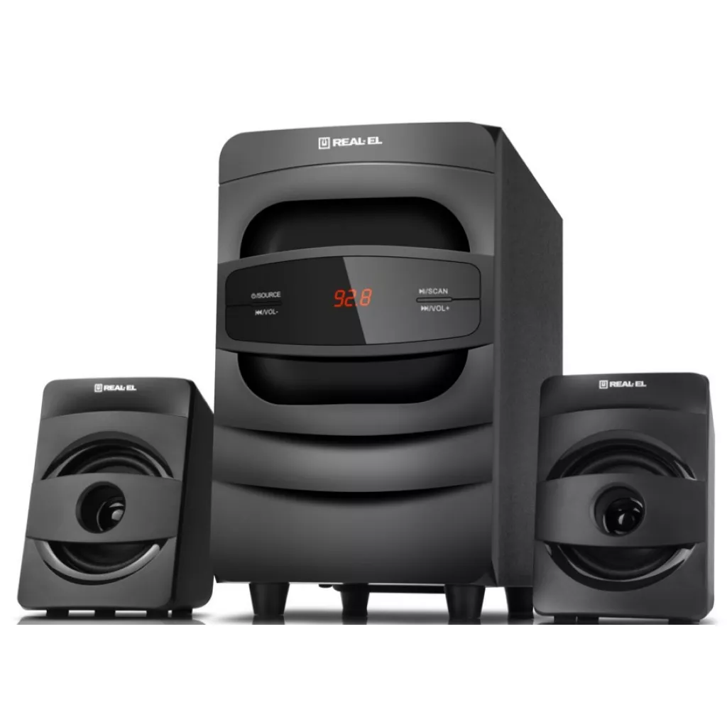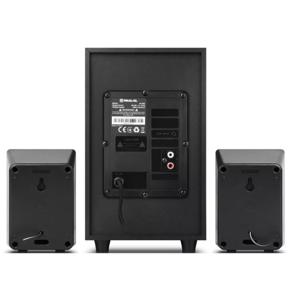 Сабвуфер с парой сателлит воспроизводят насыщенный объемный звук с широким диапазоном частот. Технология расположения низкочастотного динамика на нижней стенке сабвуфера с идеально подобранной длиной фазоинвертора создает воздушную подушку и позволяет непосредственно уменьшить низкочастотные искажения, издавая чистые басы. Удобство использования - подключение к практически любому источнику аудио сигнала, включая беспроводное Bluetooth, пульт дистанционного управления, также встроенные FM-приемник и проигрыватель аудиофайлов с USB флешек. Расположить акустическую систему Вы можете на столе или использовать настенный крепеж.