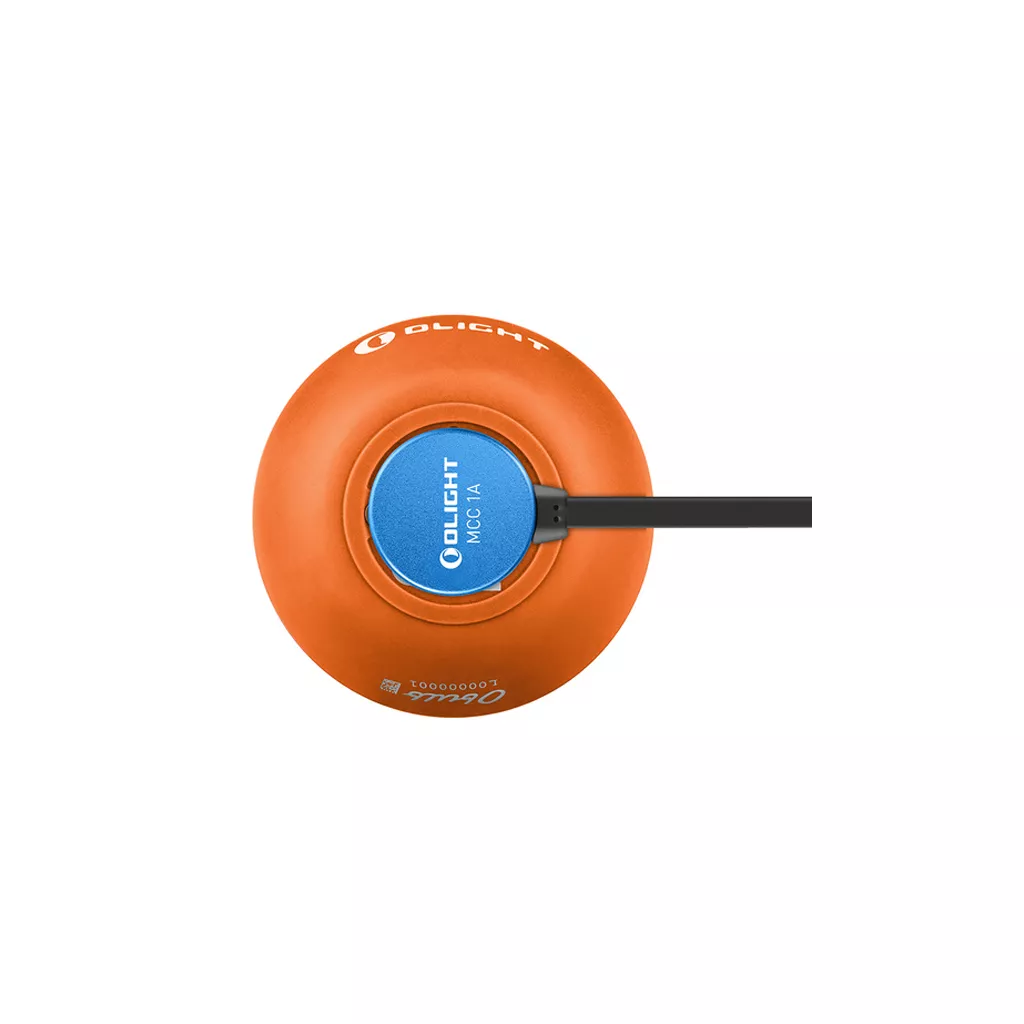 В корпус фонаря встроен магнитный разъем для зарядки фонаря фирменным кабелем Olight MCC II от сети 220 В. Время полной зарядки составляет 2 часа. Встроенный Li-po аккумулятор емкостью 630 mAh обеспечивает 56 часов в минимальном режиме яркости.
