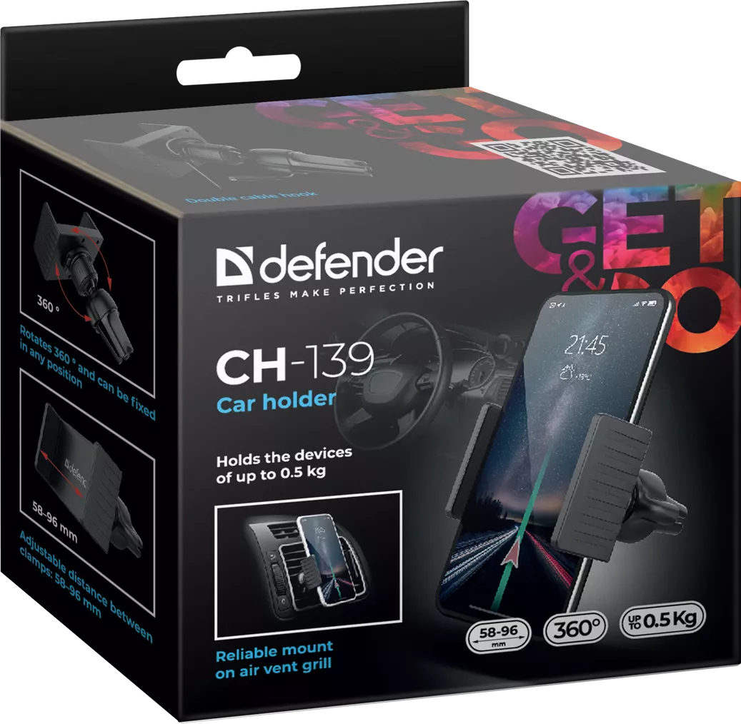 Регулируемое расстояние между зажимами 58–96 мм. Максимальное расстояние между зажимами 58 мм. Минимальное расстояние между зажимами 96 мм. Назначение Для смартфонов. Способ фиксации мобильного устройства Зажим. Угол поворота 360 °. Фиксатор для кабеля Есть. Крепление На решетку вентиляции. Материал Пластик + металл. Цвет Чёрный