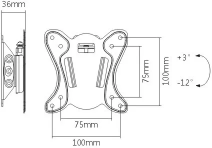Вид Кронштейны. Стандарт крепления (VESA) 100x100 мм, 75x75 мм. Диагональ экрана от 15" до 32". Максимальная нагрузка 25 кг. Регулировка Наклон. Количество степеней свободы 1. Цвет Черный. Минимальная поддерживаемая диагональ 15". Максимальная поддерживаемая диагональ 32". Угол наклона +3°~-12°